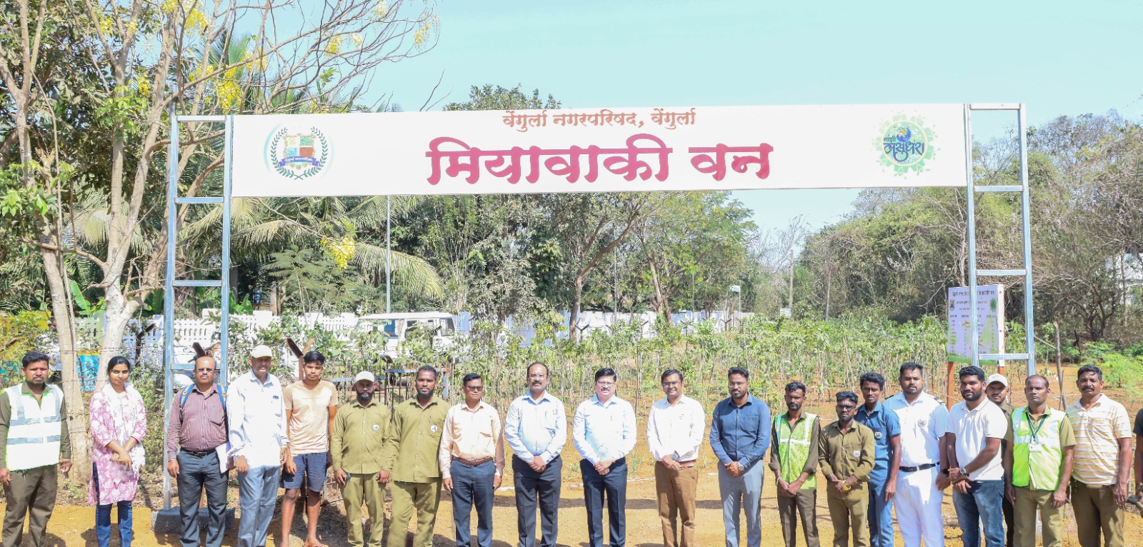 ‘माझी वसुंधरा अभियान ३.०‘ अंतर्गत कोकण विभागात सर्वोत्तम कामगिरी केल्यामुळे वेंगुर्ला नगरपरिषदेस प्रथम क्रमांकाचे मानांकन तसेच एक कोटीचे बक्षिस प्राप्त झाले आहे. यातून शहरात विविध नाविन्यपूर्ण उपक्रम साकारण्यात येत आहेत. त्यानुसार कंपोस्ट डेपो येथे माझी वसुंधरा अभियानाबाबत जनजागृती करण्यासाठी व पंचमहाभूतांची प्रचार प्रसिद्धी करण्यासाठी आकर्षक शिल्पाकृती उभारण्यात आली आहे. या शिल्पाकृतीचे लोकार्पण आयुक्त मनोज रानडे यांच्या हस्ते झाले. तर जवळपास २७०० देशी प्रजातीच्या रोपांची लागवड करून नव्याने विकसित करण्यात आलेल्या ‘मियावाकी वना‘चे लोकार्पण मुख्य कार्यकारी अधिकारी मकरंद देशमुख यांच्या हस्ते करण्यात आले. याठिकाणी वातावरणातील कार्बन डायऑक्साईडचे प्रमाण करून हवामान बदल मर्यादित करण्यात महत्त्वाची भूमिका बजावणा-या बांबू, शेवगा, खस या प्रजातीच्या १५०० रोपांची तसेच बदाम, सोनचाफा, जांभुळ, पारिजातक, रातराणी, बकुळ, सप्तपर्णी अशा विविध देशी प्रजातींच्या १२०० रोपांची लागवड करण्यात आली आहे.