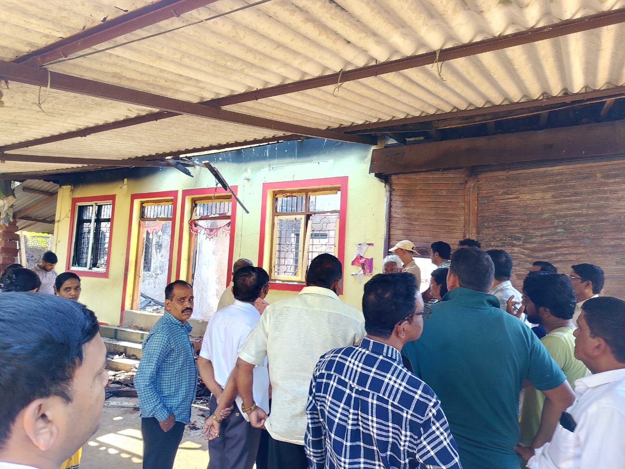 कणकवली – तालुक्यातील नांदगाव मोरयेवाडी येथील मनोहर आत्माराम बिडये व पुजा देवेंद्र बिडये यांच्या सामाईक बंद घराला सोमवारी रात्री ८:३० वा. च्या सुमारास अचानक आग लागली होती. या आगीत पुर्ण घर आणि दुकान जळून बेचिराख झाले होते. सुमारे एक तासानंतर दाखल झालेल्या अग्निशामक बंबालाही ही आग आटोक्यात येताना कठीण जात होते. या घटनेच्या पार्श्वभूमीवर मंगळवारी कणकवलीचे तहसीलदार दिक्षांत देशपांडे यांनी नांदगाव येथील आगीत बेचिराख झालेल्या घराची पहाणी केली.