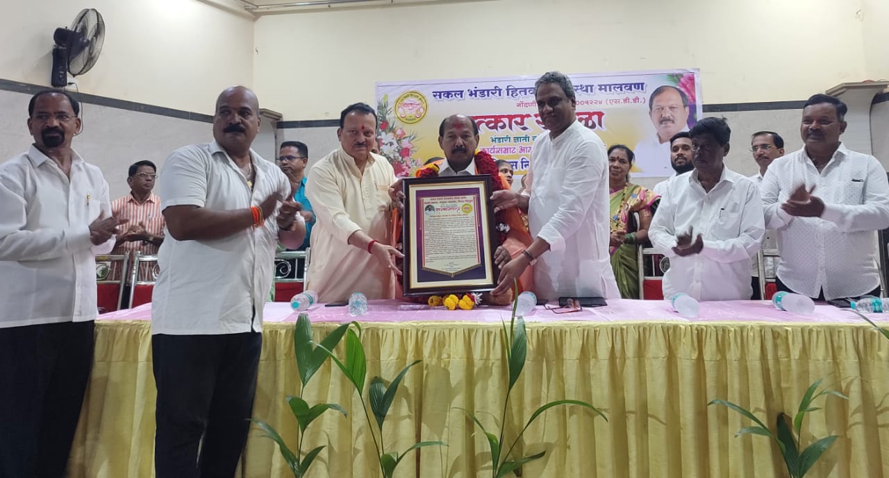 मुंबई सारख्या महानगरात नऊ वेळा आमदार म्हणून निवडून आल्याबद्दल मालवणचे सुपुत्र, भंडारी समाजाचे आमदार कालीदास कोळंबकर यांचा सत्कार सोहळा सकल भंडारी हितवर्धक संस्था व भंडारी समाजाच्या वतीने आज सायंकाळी दैवज्ञ भवन मालवण येथे संपन्न झाला. त्यावेळी सत्काराला उत्तर देताना आम. कालिदास कोळंबकर हे बोलत होते. यावेळी महाराष्ट्र चेंबर ऑफ कॉमर्स इंडस्ट्री आणि अॅग्रीकल्चर, टुरीस्ट बोर्डचे चेअरमन श्री आशिष पेडणेकर यांच्या हस्ते आम. कोळंबकर यांचा शाल श्रीफळ, सन्मानपत्र व आंबा रोप देऊन सन्मानित करण्यात आले. सन्मानपत्राचे वाचन ज्येष्ठ शिक्षक रवींद्र वराडकर यांनी केले. यावेळी अखिल भारतीय भंडारी समाज महासंघाचे अध्यक्ष श्री. नविनचंद्र बांदिवडेकर, जिल्हाध्यक्ष हेमंत करंगुटकर, माजी जिल्हाध्यक्ष रमण वायंगणकर, रत्नागिरी मंडळाचे अध्यक्ष राजीव किर, मामा माडये, मालवण तालुकाध्यक्ष रवींद्र तळाशीलकर, भाई गोवेकर,