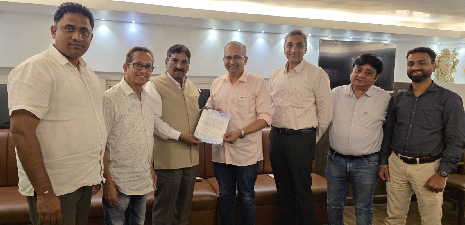 ⚡कुडाळ ता.०४-: सिंधुदुर्ग जिल्ह्यातील चीपी एअरपोर्ट पूर्ण क्षमतेने चालू राहावा यासाठी महाराष्ट्र चेंबर ऑफ कॉमर्स इंडस्ट्रीज अँड एग्रीकल्चर हा विशेष प्रयत्न करीत आहे. याचाच एक भाग म्हणून महाराष्ट्र चेंबर ऑफ कॉमर्स इंडस्ट्रीज अँड एग्रीकल्चरचे अध्यक्ष ललित गांधी यांच्या प्रमुख उपस्थितीत व मार्गदर्शनाखाली कोकण विभागाचे उपाध्यक्ष श्रीकृष्ण उर्फ दीपक परब तसेच गव्हर्निंग कौन्सिल मेंबर राजन नाईक व संतोष राणे यांनी फ्लाय91 या विमान कंपनीच्या गोवा येथील मुख्य कार्यालयात कंपनीचे मालक व वरिष्ठ अधिकारी यांची भेट घेतली.