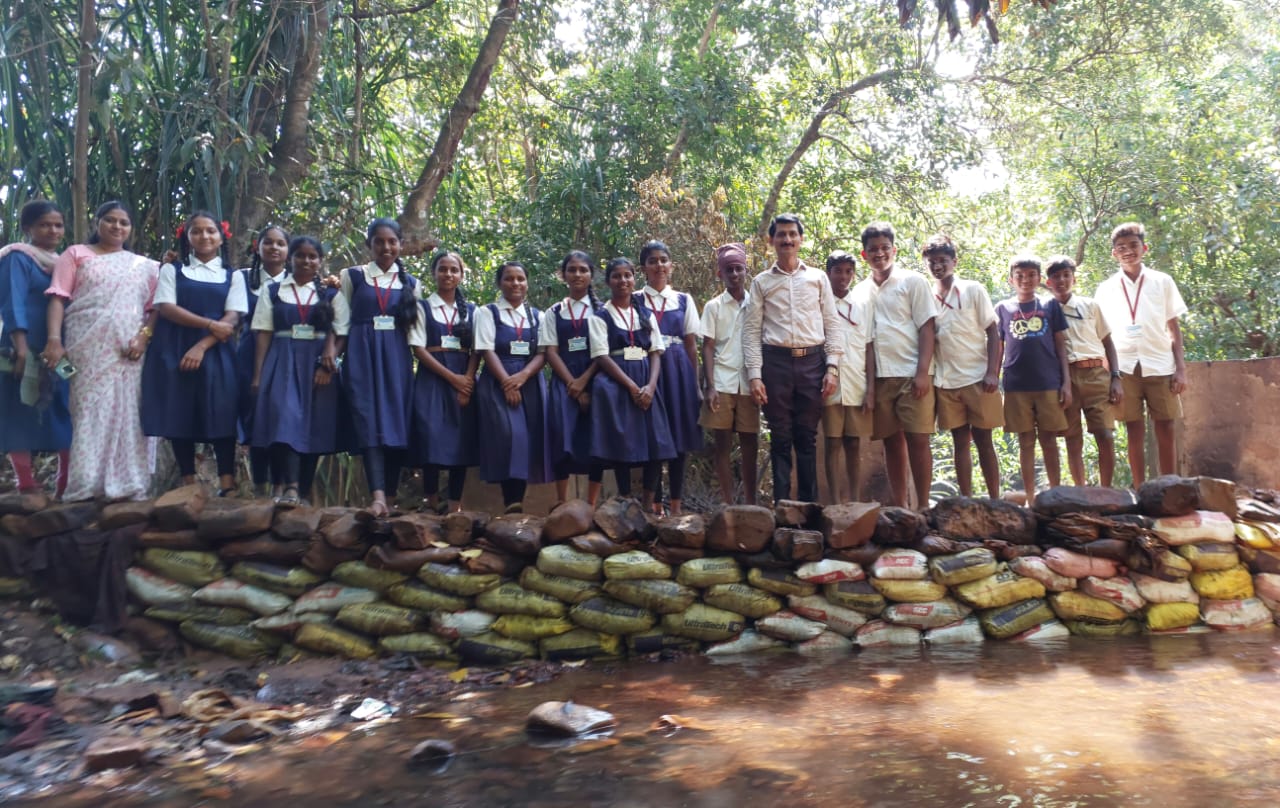 वडाचापाट येथील शांतादुर्गा हायस्कूलच्या विद्यार्थ्यांनी सामाजिक बांधिलकी जोपासत ग्रामस्थांच्या मदतीने मसदे येथे वनराई बंधारा बांधल्याने या भागातील बागायतींना त्याचा मोठया प्रमाणावर फायदा होणार आहे