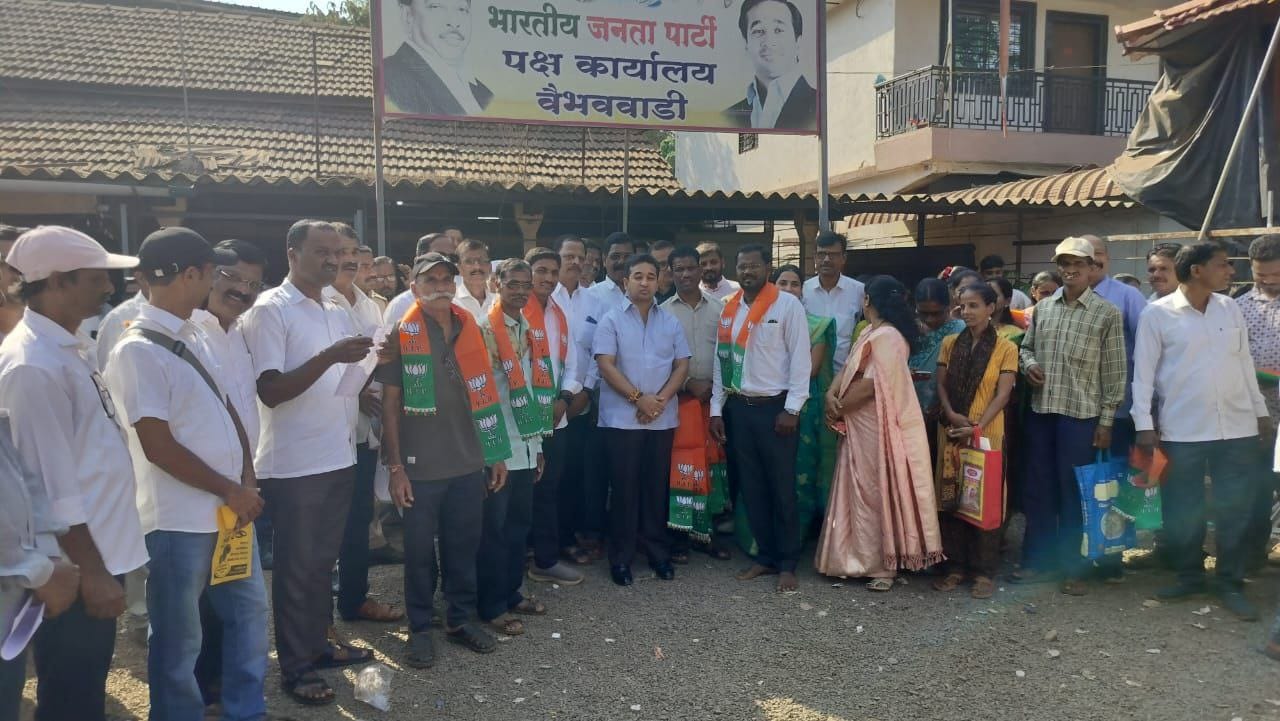 ⚡वैभववाडी ता.०८-: उबाठा गटाचे सोनाळी गावचे सरपंच भीमराव भोसले तसेच ग्रामपंचायत सदस्य बाळकृष्ण बोभाटे यांच्यासह असंख्य कार्यकर्त्यांनी भाजपमध्ये प्रवेश केला. पालकमंत्री नितेश राणे यांनी सर्व प्रवेश करणाऱ्या कार्यकर्त्यांचे पक्षात स्वागत केले. प्रवेश करणाऱ्या कार्यकर्त्यांमध्ये संतोष शेलार, जयवंत पवार, हरिचंद्र गुरव, सचिन कदम, प्रशांत कदम, राजेंद्र जाधव, सचिन भोसले, सुधीर जाधव व कार्यकर्त्यांचा समावेश आहे.