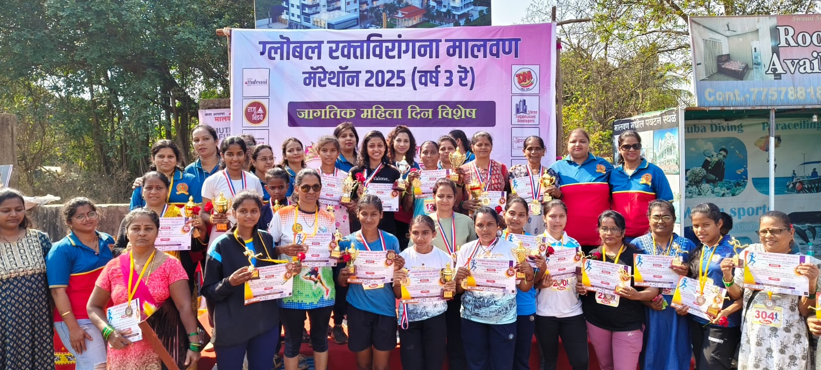 महिला दिनानिमित्त ग्लोबल रक्तदाते मालवण सिंधुदुर्ग आणि ग्लोबल रक्तविरांगना मालवण तर्फे महिलांसाठी आयोजित ग्लोबल रक्तविरांगना मिनी मॅरेथॉन स्पर्धा आज मालवणात मोठ्या उत्साहात संपन्न झाली. या स्पर्धेतील विविध गटातून दिविजा संदीप सातपुते, लीना नरेश धुरी, श्रेया सागर मांजरेकर, शर्वरी महादेव पाटील, अनुष्का नागेश कदम, अनिता आळवे यांनी प्रथम क्रमांक पटकावीला.