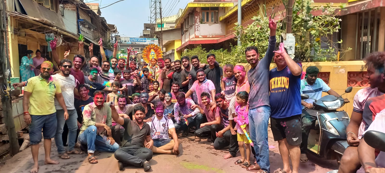 शहरातील जिजामाता चौक येथे सालाबादप्रमाणे सर्वपक्षीय पदाधिकारी आणि कार्यकर्ते यांनी एकत्र येत रंगांची उधळण करीत धुळवड साजरी केली. वेगवेगळी सोंगे घेत शिमग्याचे पोस्त मागण्याची परंपरा देखील जपण्यात आली. काही ठिकाणी डीजे तर काही ठिकाणी ढोल पथकाच्या तालावर तरुणाई रंग खेळताना पाहायला मिळाली.