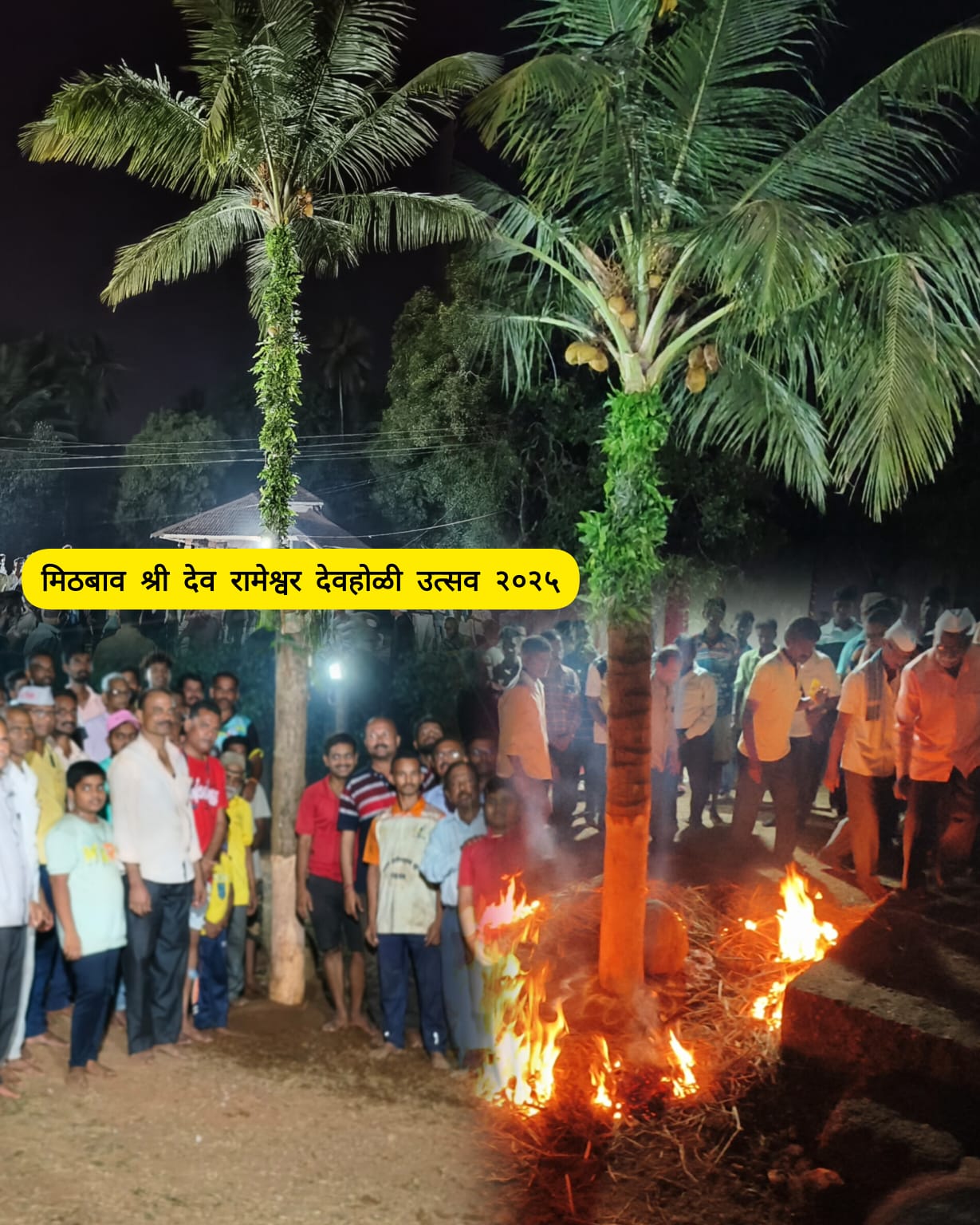 यंदाची देव होळी पूर्वापार चालत आलेल्या प्रथेनुसार साजरी करण्यात आली. उत्सवाच्या प्रमुख विधींमध्ये कल्पवृक्ष (माड) होळी उभारणी हा सर्वात महत्त्वाचा सोहळा होता.होळी उभारण्यासाठी लागणारा कल्पवृक्ष (माड) गावातील विजय काळे यांच्या बागेतून तोडण्यात आला. त्यानंतर वाजत-गाजत, ढोल-ताशांच्या निनादात हा कल्पवृक्ष रामेश्वर मंदिरापर्यंत आणण्यात आला. कल्पवृक्षाच्या संपूर्ण खोडाला आंब्याच्या टाळांनी सजवून, टोकाला निशाण बांधण्यात आले आणि पारंपरिक पद्धतीने मांडावर होळी उभी करण्यात आली.