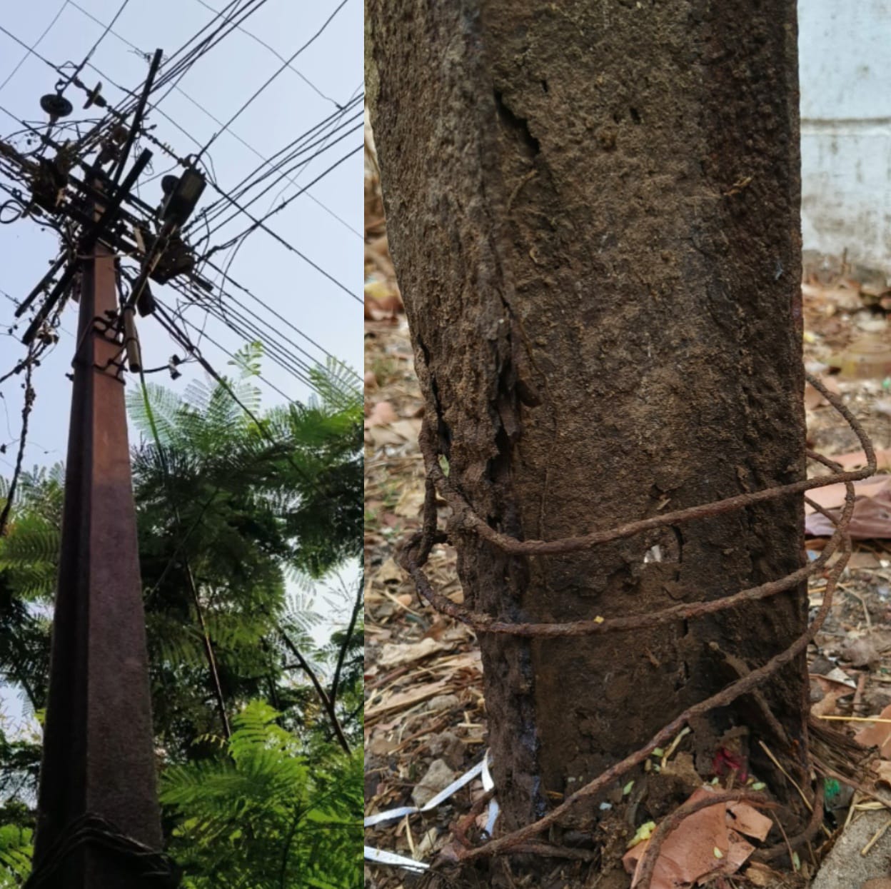 ⚡सावंतवाडी ता.१६ अक्षय धुरी-: सावंतवाडी- आंबोली महामार्गावरील लाखे वस्तीसमोरील हाय टेन्शन लाईटचा पोल खालून पूर्णपणे गंजला असून, तो कधीही कोसळण्याची शक्यता आहे. या मार्गावरून दररोज मोठ्या प्रमाणात वाहने, प्रवासी आणि शाळकरी मुले ये-जा करतात. तसेच, पोलच्या आजूबाजूला मोठी वस्ती असल्याने स्थानिक नागरिकांमध्ये भीतीचे वातावरण निर्माण झाले आहे. त्यामुळे तातडीने गंजलेला हाय टेन्शन पोल बदलावा अन्यथा आंदोलन छेडण्यात येईल असा इशारा सामाजिक बांधिलकीचे सदस्य रवी जाधव यांनी दिला आहे.