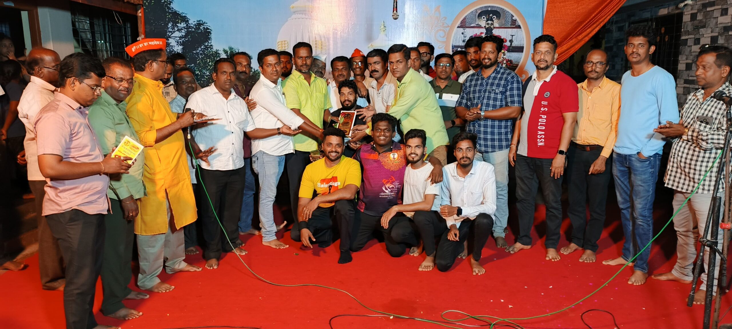 या स्पर्धेत पाच संघ सहभागी झाले होते. या संघांनी सामाजिक विषयांवर भाष्य करणारे सोंगे सादर केली. परीक्षण सुशील डवर व शेखर गवस यांनी केले. स्पर्धा पार पडल्यानंतर बक्षीस वितरण सोहळा पार पडला. यात विजेत्यांना मान्यवरांच्या रोख रक्कम, स्मृतिचिन्ह देऊन गौरविण्यात आले. तसेच सहभागी संघांना स्मृतिचिन्ह देण्यात आले. यावेळी सरपंच संदीप मेस्त्री, रामदास उर्फ रामू विखाळे, विनोद कोरगावकर, तनोज कळसुलकर, अनंत हजारे, गिरीश धुमाळे, महेश लाड, अनिल मेस्त्री, महेश मेस्त्री, बाबू कोरगावकर, आबा कोरगावकर, विनय खोचरे, संतोष हजारे, आबा मेस्त्री, ग्रा. पं. सदस्य सचिन खोचरे, धीरज मेस्त्री, बाबू नारकर, प्रथमेश मठकर, चेतन मुंज, प्रद्युम मुंज, चेतन अंधारी, प्रथमेश धुमाळे आदी उपस्थित होते.