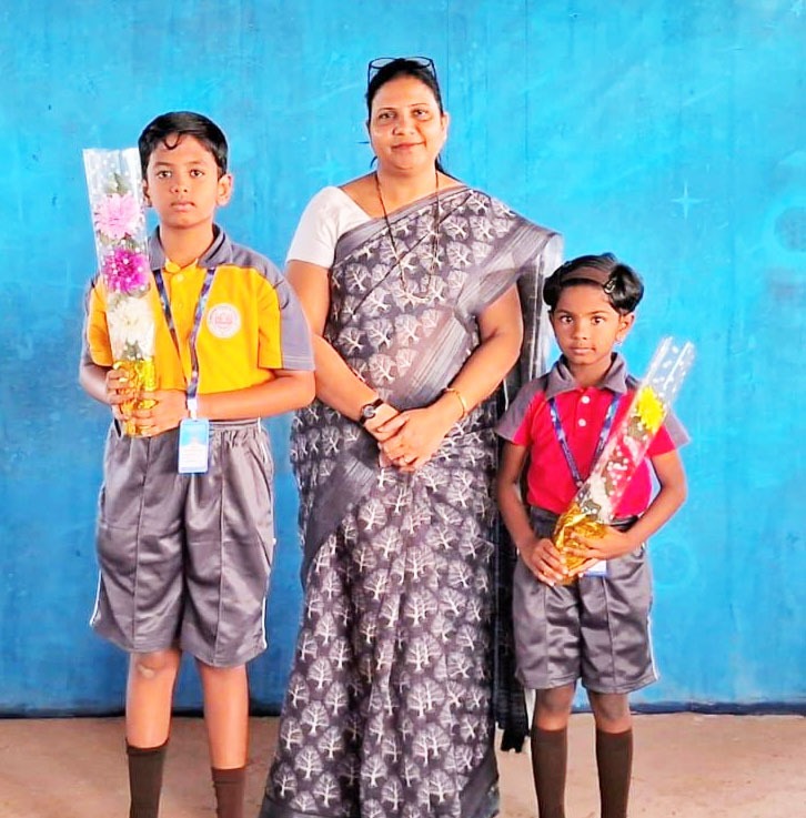फोटोओळी – तनिषा व श्रेयांश यांचे स्कूलतर्फे अभिनंदन करण्यात आले.