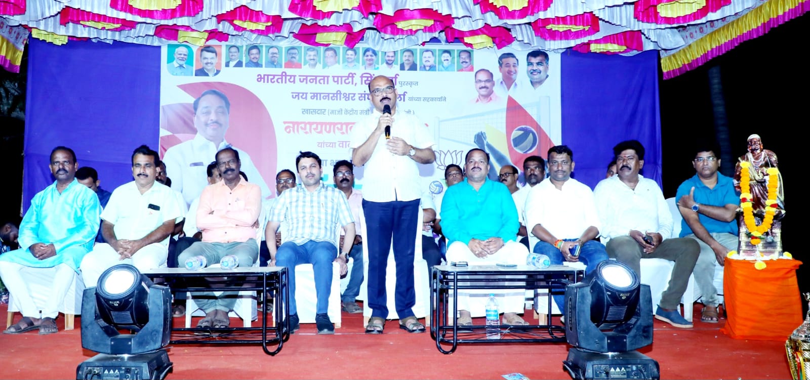 ⚡वेंगुर्ला ता.०८-: भारतीय जनता पार्टी, सिंधुदुर्ग व जय मानसीश्वर संघ, वेंगुर्ला यांच्या संयुक्त विद्यमाने आयोजित भव्य प्रकाशझोतातील खुल्या व्हॉलीबॉल स्पर्धेचे शानदार उद्घाटन वेंगुर्ल्यातील कॅम्प मैदानावर उत्साहात पार पडले. हे आयोजन माजी केंद्रीय मंत्री, माजी मुख्यमंत्री ,विद्यमान खासदार नारायणराव राणे यांच्या वाढदिवसानिमित्त ” क्रीडा महाकुंभ ” अंतर्गत करण्यात आले होते.