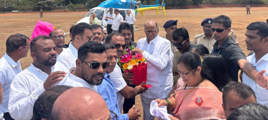 ⚡वेंगुर्ला ता.२४-: राष्ट्रवादीचे नेते शरद पवार आज सिंधुदुर्ग जिल्हा दौऱ्यावर आले असून यावेळी वेंगुरला कॅम्प येतील हेलिपॅडवर सावंतवाडी राष्ट्रवादीचे तालुकाध्यक्ष पुंडलिक दळवी यांनी पुष्पगुच्छ देऊन त्यांचे स्वागत केले. यावेळी शहराध्यक्ष देवेंद्र टेमकर, नवल साटेलकर, बंटी कांबळी, विशाल बागायतकर,आदी उपस्थित होते