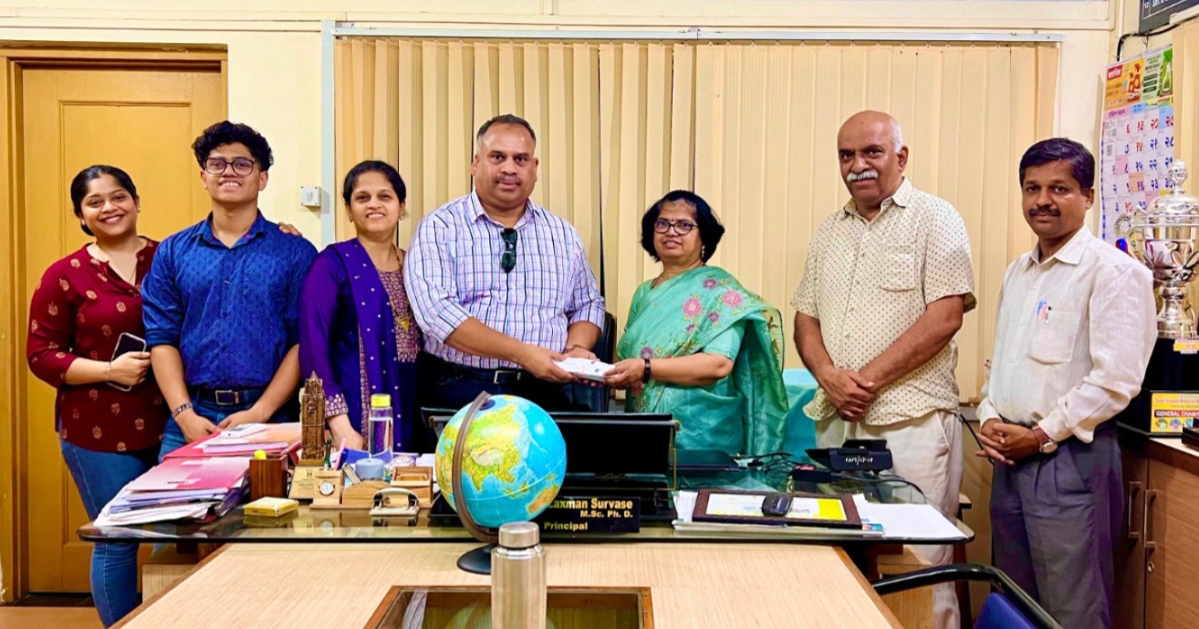 यावेळी महाविद्यालयाचे माजी विद्यार्थी व प्रतिष्ठित उद्योजक ए. टी. राणे यांनी आज महाविद्यालयाला कुटुंबासमवेत भेट देऊन रोख रुपये दीड लाख रुपयेचे डोनेशन क्लास रूम डेव्हलपमेन्ट साठी दिले. यावेळी प्राचार्यडॉ. स्मिता सुरवसे, महेंद्र गवस, सौ. मिलन राणे, डॉक्टर अस्मिता राणे, आदित्य राणे आदी उपस्थित होते.
