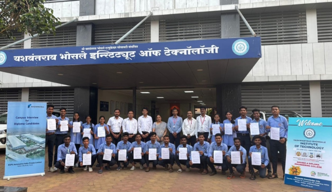 ⚡सावंतवाडी ता.०२-: यशवंतराव भोसले इन्स्टिट्यूट ऑफ टेक्नॉलॉजीच्या डिप्लोमा विभागातील ५५ विद्यार्थ्यांची आयएफबी, जीई, केएसपीजी आणि विप्रो या नामांकित कंपन्यांमध्ये निवड करण्यात आली आहे. कॉलेजमध्यें आयोजित कॅम्पस इंटरव्ह्यूमध्ये ही निवड झाली. यामध्ये होम अप्लायन्सेस बनविणाऱ्या आयएफबीमध्ये १७, जनरल इलेक्ट्रिक १४, वाहनांचे सुटे भाग बनवणाऱ्या केएसपीजी ऑटोमोटिव्ह मध्यें २२ आणि विप्रोमधील २ विद्यार्थ्यांचा समावेश आहे._