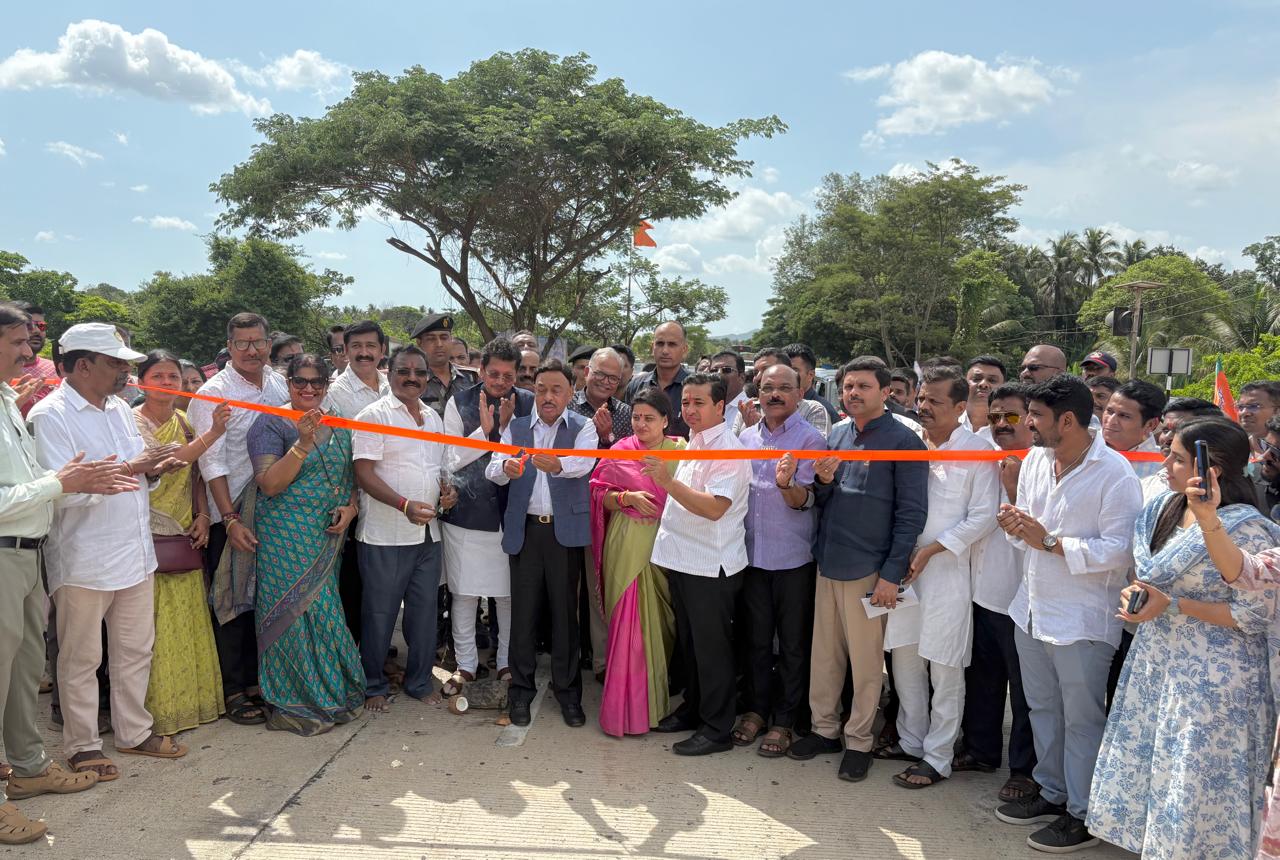 ⚡बांदा ता.१२-: झाराप – पत्रादेवी महामार्गावरील बांदा शहरातील नूतन उड्डाणपूलाचे उद्घाटन माजी केंद्रीय मंत्री खासदार नारायण राणे यांच्या हस्ते फित कापून करण्यात आले. माजी शालेय मंत्री आ. दीपक केसरकर यांच्या हस्ते श्रीफळ वाढविण्यात आले.