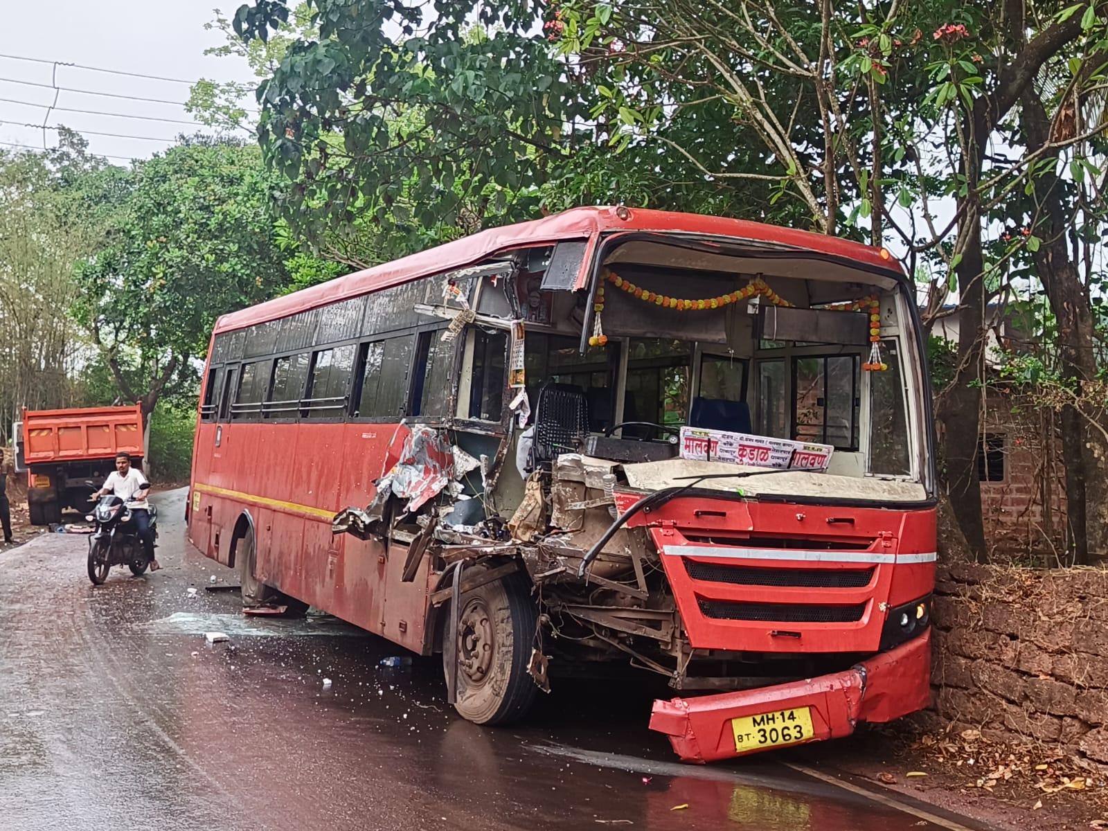मालवण डेपोची एसटी बस (M H -14 BT -3063) मंगळवारी दुपारी कुडाळ वरून मालवणच्या दिशेला येत असताना चौके नारायण वाडी येथे एसटी बस आणि चौके वरून धमापुरच्या दिशेने जाणाऱ्या डंपर(MH-07- AJ -2810) यांच्यामध्ये एसटी चालकाच्या बाजूने जोरदार धडक होऊन अपघात झाला. या अपघातात एसटी बसचा चालक किरकोळ जखमी होऊन सुदैवाने बचावला.बसमधील प्रवाशांनाही किरकोळ दुखापती झाल्या.. मात्र झालेल्या अपघातात एसटी बसचे मोठे नुकसान झाले. चालक वाहक आणि किरकोळ जखमी प्रवाशांना प्राथमिक उपचारासाठी दवाखान्यात नेण्यात आले. बसचालक आणि वाहक यांनी अपघाताची खबर मालवण एसटी आगारात दिली असून एसटी प्रशासनाकडून पुढील कार्यवाही करण्याची प्रक्रिया चालू आहे.