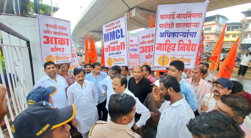 ⚡कणकवली ता.२०-: कासार्डे येथील अवैध मायनिंगचा आका कोण? अवैध मायनिंगला पाठीशी घालणाऱ्या अधिकाऱ्यांचा जाहीर निषेध, बेकायदेशीर उत्खनन करणाऱ्या एम. एम. सी. एल कंपनीची चौकशी झालीच पाहिजे. बंद करा, बंद करा हप्ते वसुली बंद करा. शासनाचा महसूल बुडविणाऱ्या अधिकाऱ्यांचा जाहीर निषेध अशा घोषणा देत फलक झळकवत कासार्डे येथे अवैधपणे सुरूअसलेल्या सिलिका वाळू उत्खननावर कारवाईच्या मागणीसाठी शिवसेना उद्धव बाळासाहेब ठाकरे पक्षाच्या वतीने माजी आमदार वैभव नाईक, परशुराम उपरकर, राजन तेली, कणकवली विधानसभा प्रमुख सतीश सावंत, युवासेना जिल्हाप्रमुख सुशांत नाईक यांच्या नेतृत्वाखाली आज कणकवली प्रांताधिकारी कार्यालयाच्या गेटवर धरणे आंदोलन छेडण्यात आले. मात्र आंदोलकांशी चर्चा करण्यासाठी प्रांताधिकारी बाहेर न आल्याने. शिवसेना नेत्यांनी प्रांताधिकारी यांच्या केबिनमध्ये धडक देत प्रांताधिकारी जगदीश कातकर यांना जाब विचारत खडेबोल सुनावले.