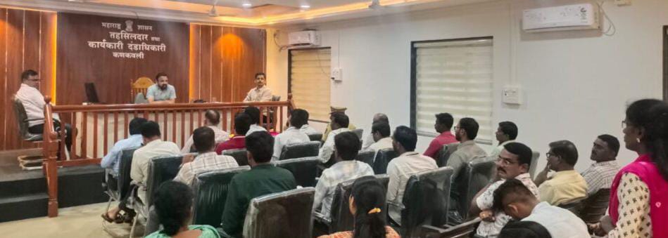 कणकवली तहसीलदार कार्यालयात आपत्ती व्यवस्थापनची बैठक प्रांताधिकारी जगदीश कातकर यांच्या अध्यक्षतेखाली घेण्यात आली. या बैठकीला कणकवली तहसीलदार दीक्षांत देशपांडे, निवासी नायब तहसीलदार मनोज यादव, सहाय्यक गटविकास अधिकारी मनोज वालावलकर, नगरपंचायत अधिकारी, महामार्ग प्राधिकरणचे उप अभियंता अतुल शिवनिवार, सार्वजनिक बांधकाम विभागाच्या उप अभियंता के. के. प्रभू, कणकवली पोलीस, वीज वितरण चे उप कार्यकारी अभियंता विलास बगडे, लघु पाटबंधारे विभागाचे अधिकारी व एसटी चे अधिकारी उपस्थित होते.