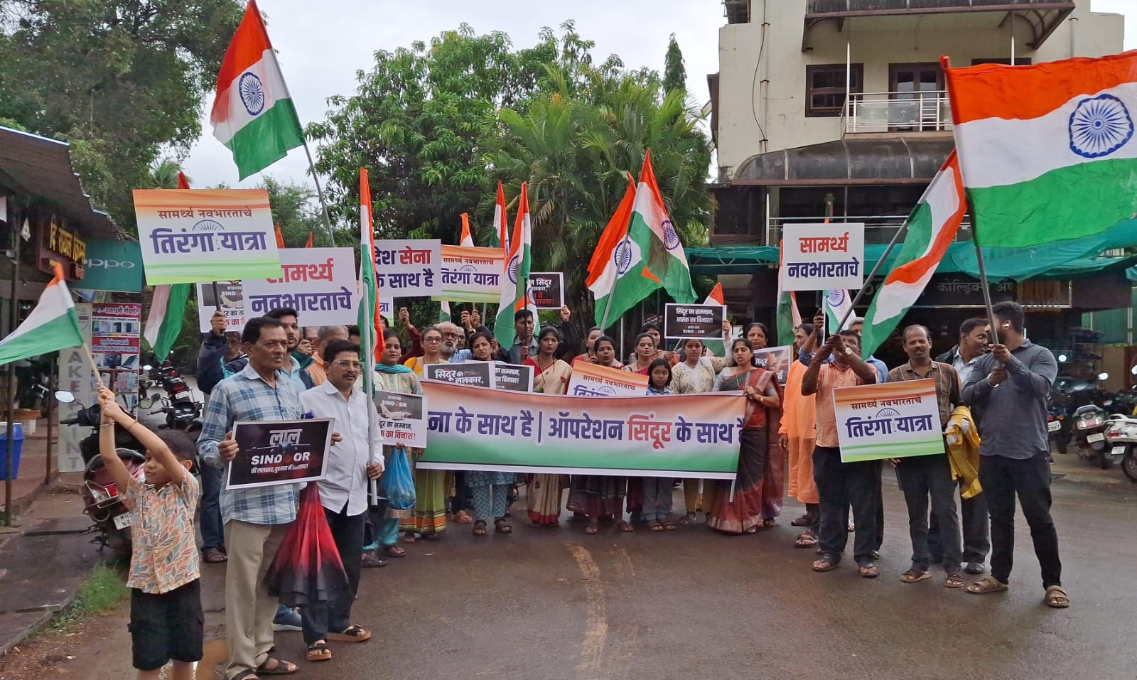 काश्मीर मधील पहलगाम येथे पाकिस्तान पुरस्कृत दहशतवाद्यानी भारतातील निष्पाप नागरिकांवर हल्ला केल्याने या हल्ल्याला ऑपरेशन सिंदूरच्या माध्यमातून भारतीय सैन्याने पराक्रम गाजवत पाकिस्तानला सडेतोड उत्तर दिले. भारतीय सैन्याच्या या पराक्रमाचा सन्मान करण्यासाठी आज सायंकाळी कुडाळ शहरात राजमाता जिजाऊ पुतळा ते डॉ. बाबासाहेब आंबेडकर पुतळा अशी तिरंगा रॅली काढण्यात आली. राजमाता जिजाऊ याना पुष्पहार अर्पण करून भारतमाता कि जयच्या घोषणा देत रॅलीला सुरुवात झाली. कुडाळ शहराच्या मुख्य रस्त्यावरून भर पावसात रॅली डॉ. बाबासाहेब आंबेडकर पुतळा येथे येऊन विसर्जित झाली. यावेळी डॉ. बाबासाहेब आंबेडकर यांच्या पुतळ्याला पुष्पहार अर्पण करण्यात आला आणि घोषणा देण्यात आल्या.