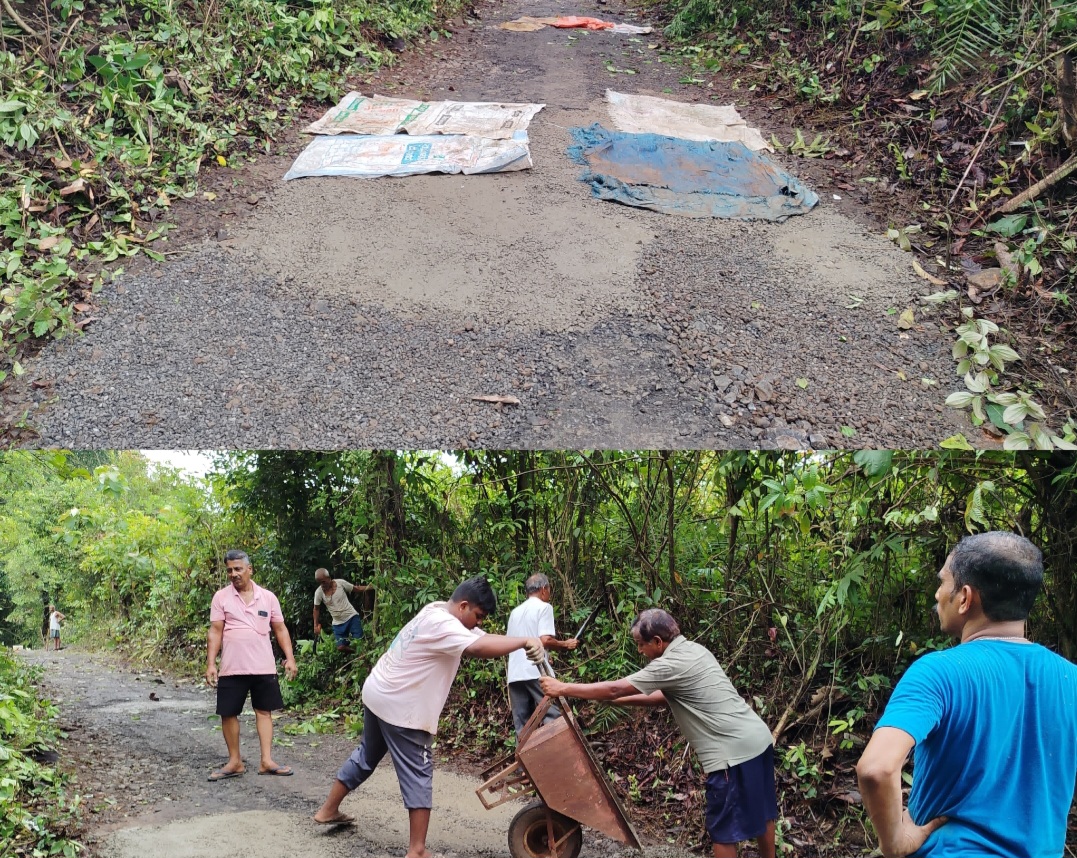 श्रमदानातून वाडीजोड रस्त्यांवरील बुजवले खड्डे…