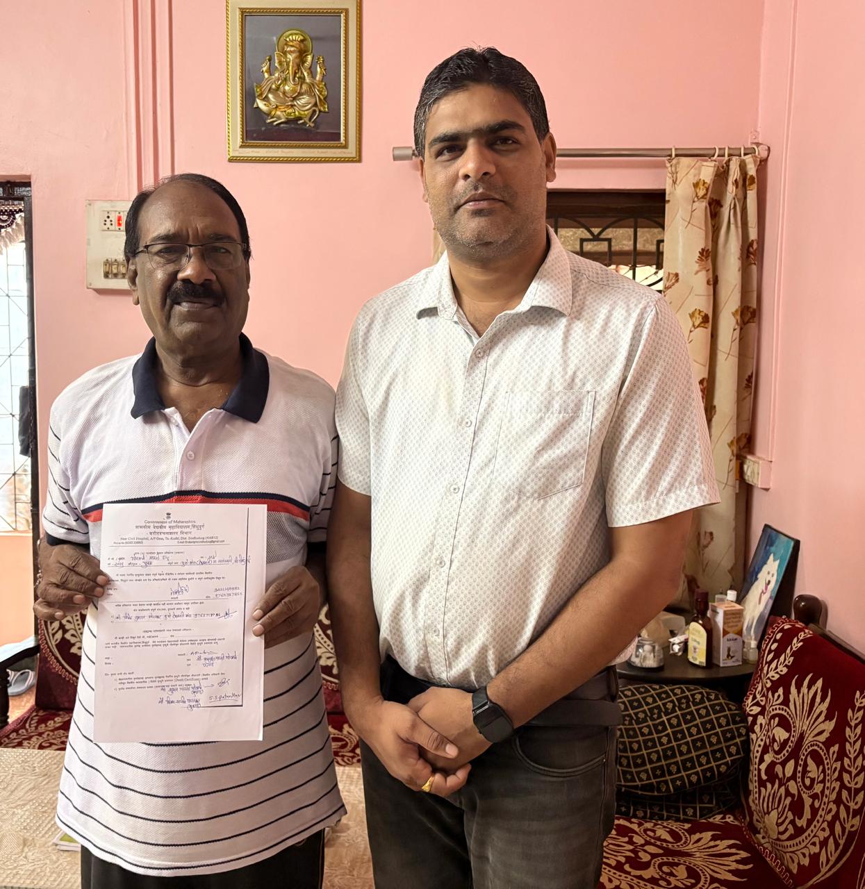 बांदा येथे मरणोत्तर देहदानाचा संकल्प केलेले एम डी मोरबाळे. सोबत नीलेश मोरजकर.