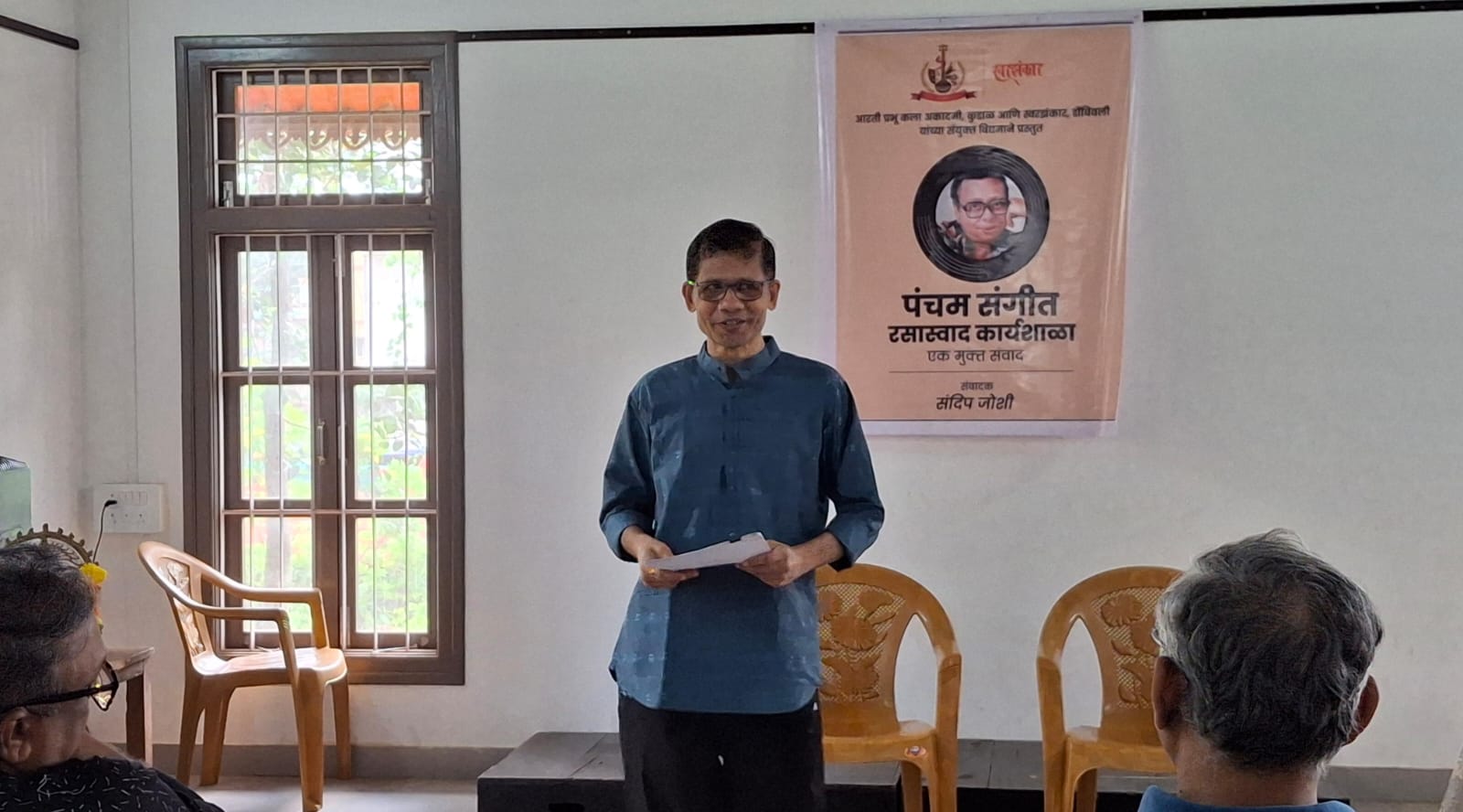 कुडाळच्या चिं त्र्यं खानोलकर ललित कला केंद्रामध्ये या पंचम संगीत रसास्वाद कार्यशाळेचे अर्थात संगीत रसिकांसोबतच्या एका मुक्त संवाद सत्राचे आयोजन करण्यात आले होते. डोंबिवलीच्या स्वरझंकार संस्थेचे संदीप जोशी यांनी हा कार्यक्रम सादर केला. कार्यक्रमाचा शुभारंभ संदीप जोशी आणि आरती प्रभू कला अकादमीचे सदस्य रंगकर्मी प्रफुल्ल वालावलकर यांच्या हस्ते नटराज पूजन करून झाला. आरती प्रभू कला अकादमीचे कार्यवाह केदार सामंत यांनी संदीप जोशी आणि प्रफुल्ल वालावलकर यांचे स्वागत केले.