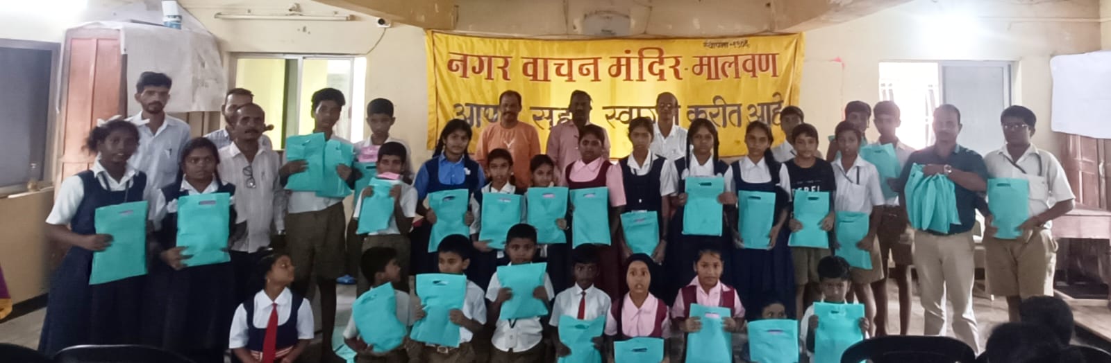 नगर वाचन मंदिर, मालवण आणि कै. राधाबाई हरिश्चंद नारिंग्रेकर ट्रस्ट यांच्या संयुक्त विद्यमाने मालवण मधील गरजू विद्यार्थ्यांना शालेय गणवेश वितरण करण्यात आले.