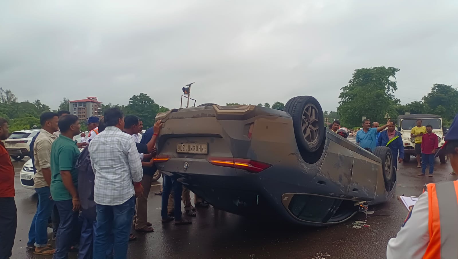 हळवल फाटा येथे बीएमडब्ल्यू कारचा अपघात…