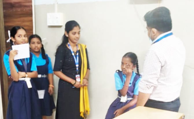 फोटोओळी-तालुकास्तरीय वैद्यकीय मूल्यांकन शिबिरात विद्यार्थ्यांची नेत्र तपासणी करण्यात आली.