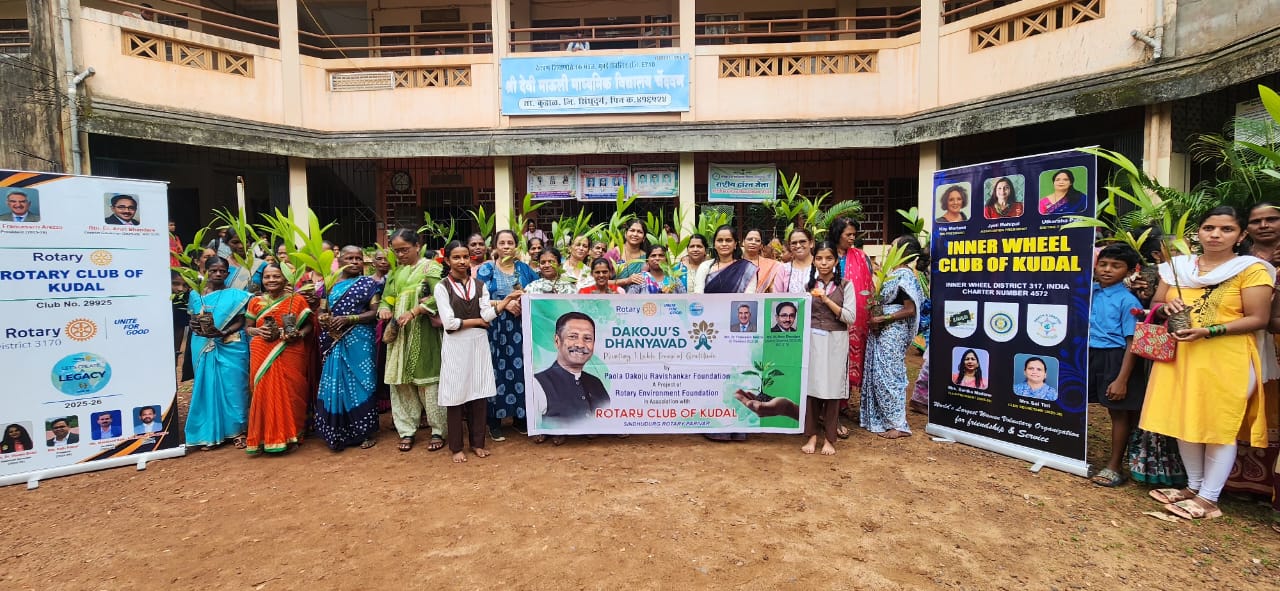 रविशंकर डोकोजू फाऊंडेशन बेंगलोर व रोटरी क्लब ऑफ कुडाळ कडून सिंधुदुर्ग जिल्ह्यातील विविध भागात यावर्षी सुमारे दहा हजार फळझाडेरोप वाटप व वृक्षारोपण करण्यात येणार असल्याचे डोकोजू धन्यवाद उपक्रमांचे चेअरमन राजन बोभाटे यांनी व्यक्त केले. वितरित करण्यात आलेल्या ६०० फळझाडे रोपांमध्ये सुपारी, लिंबू, दालचिनी, आदी झाडांचा समावेश होता. सर्व उपस्थित महिलांच्या वतीने इनरव्हील क्लब ऑफ कुडाळच्या अध्यक्षा सौ सानिका मदने, रोटरी क्लब ऑफ कुडाळ अध्यक्ष राजीव पवार व डाॅ संजय केसरे यांचा विशेष सत्कार माजी उपसरपंच सौ रश्मी नाईक यांचेहस्ते करण्यात आला. सूत्रसंचालन व आभार सौ गवस व श्री धरणे सर यांनी केले.