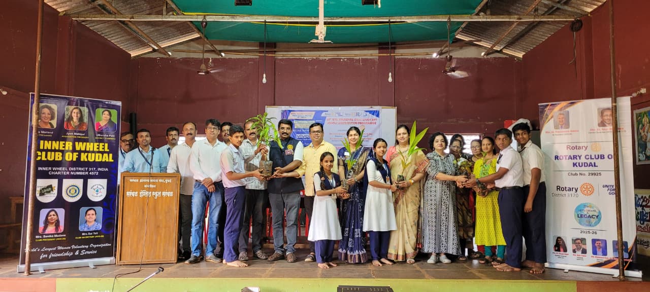 कुडाळ : सरंबळ इंग्लिश स्कूल मधील विद्यार्थ्यांना इनरव्हील क्लब ऑफ कुडाळ व रविशंकर डोकोजू फाऊंडेशन बेंगलोर कडून 110 फळझाडेरोप वितरित करण्यात आली.