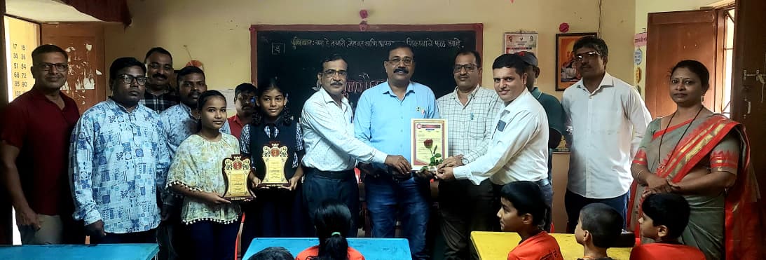 इन्सुली येथे विद्यार्थी व शिक्षक यांचे अभिनंदन करताना मान्यवर.