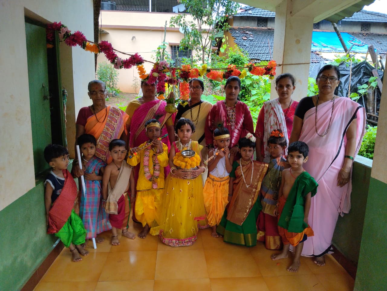 यावेळी सर्व मुलांनी श्रीकृष्णाची वेशभूषा साकारली होती. पारंपारिक वेशभूषेत उत्सव साजरा केला. यावेळी अंगणवाडी सेविका वर्षा आगलावे यांच्यासह पालक उपस्थित होते.