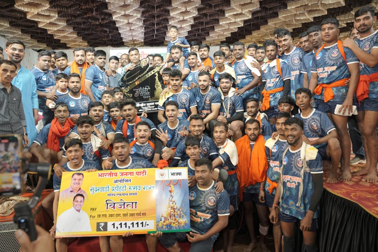 सावंतवाडी : भारतीय जनता पार्टीच्यावतीने सावंतवाडीत आयोजित करण्यात आलेल्या भव्य दहीहंडी उत्सवाला सावंतवाडीकरांनी मोठा प्रतिसाद दिला. युवा नेते संदीप एकनाथ गावडे यांच्या संकल्पनेतून राणी पार्वती देवी हायस्कूल व ज्युनिअर कॉलेजच्या मैदानावर हा सोहळा पार पडला. या उत्सवाचे प्रमुख आकर्षण ‘सैराट’ फेम अभिनेत्री रिंकू राजगुरू आणि पालकमंत्री नितेश राणे यांची विशेष उपस्थिती ठरली. या वर्षीच्या दहीहंडी स्पर्धेत जय हनुमान गोविंदा पथक, खडपेवाडी (राजापूर) यांनी प्रथम क्रमांक पटकावत १ लाख ११ हजार १११ चे रोख पारितोषिक जिंकले.