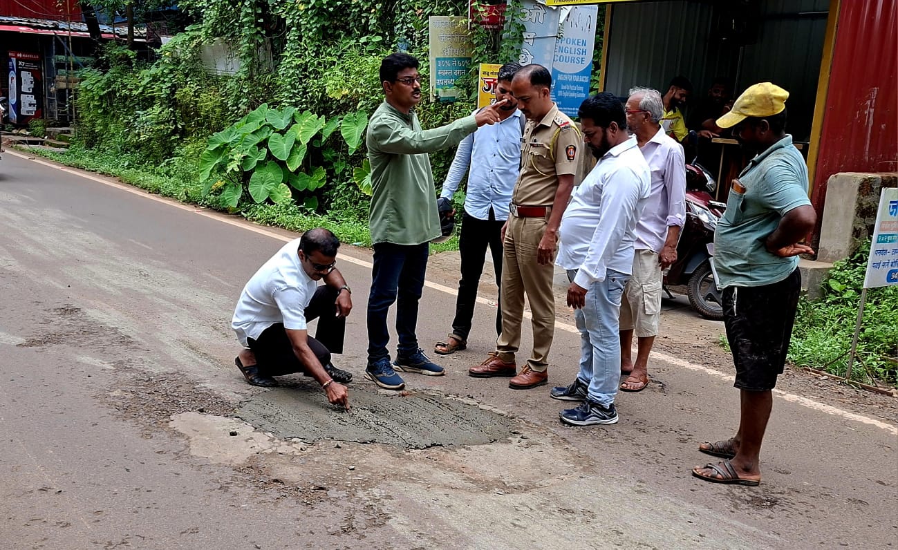 यावेळी अरविंद मोंडकर म्हणाले, सार्वजनिक बांधकाम विभाग आज खड्डे बुजवीत आहे, मात्र गेल्या आठ दिवसापूर्वीच हे खड्डे बुवजिले होते. मात्र त्यातील सिमेंट उखडले असून खड्ड्यात पडून नागरिक जखमी होत आहे. आता पुन्हा हे खड्डे बुजविताना वाहतुक कोंडी केली जात आहे. खड्डे बुजविण्यासाठी अवैधपणे वाहने चालविली जात आहेत. वाहनांची कागदपत्रे नाहीत. आता बुजविलेल्या खड्ड्यातील सिमेंट निघून जात आहे, आता सार्वजनिक बांधकाम विभागाचे अधिकारी येऊन त्यावर गोणीचे कापड टाकत आहेत. खड्डे बुजविण्याच्या नावाखाली थुकपट्टी लावण्याचे काम केले जात आहे, असा आरोप यावेळी अरविंद मोंडकर यांनी केला.