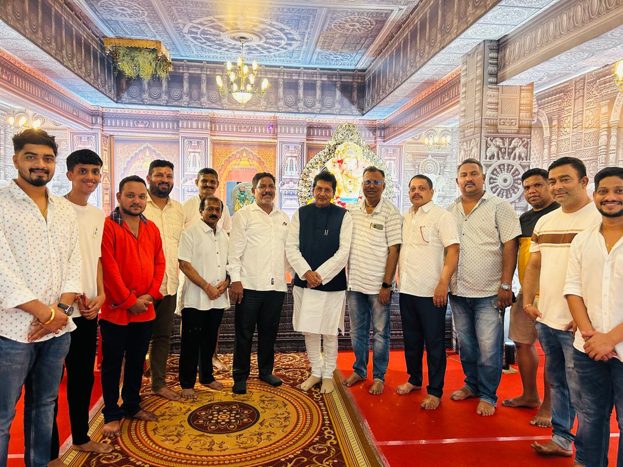 बांदा येथे बांद्याच्या बाप्पाचे दर्शन घेताना दीपक केसरकर. सोबत मंडळाचे पदाधिकारी व कार्यकर्ते.