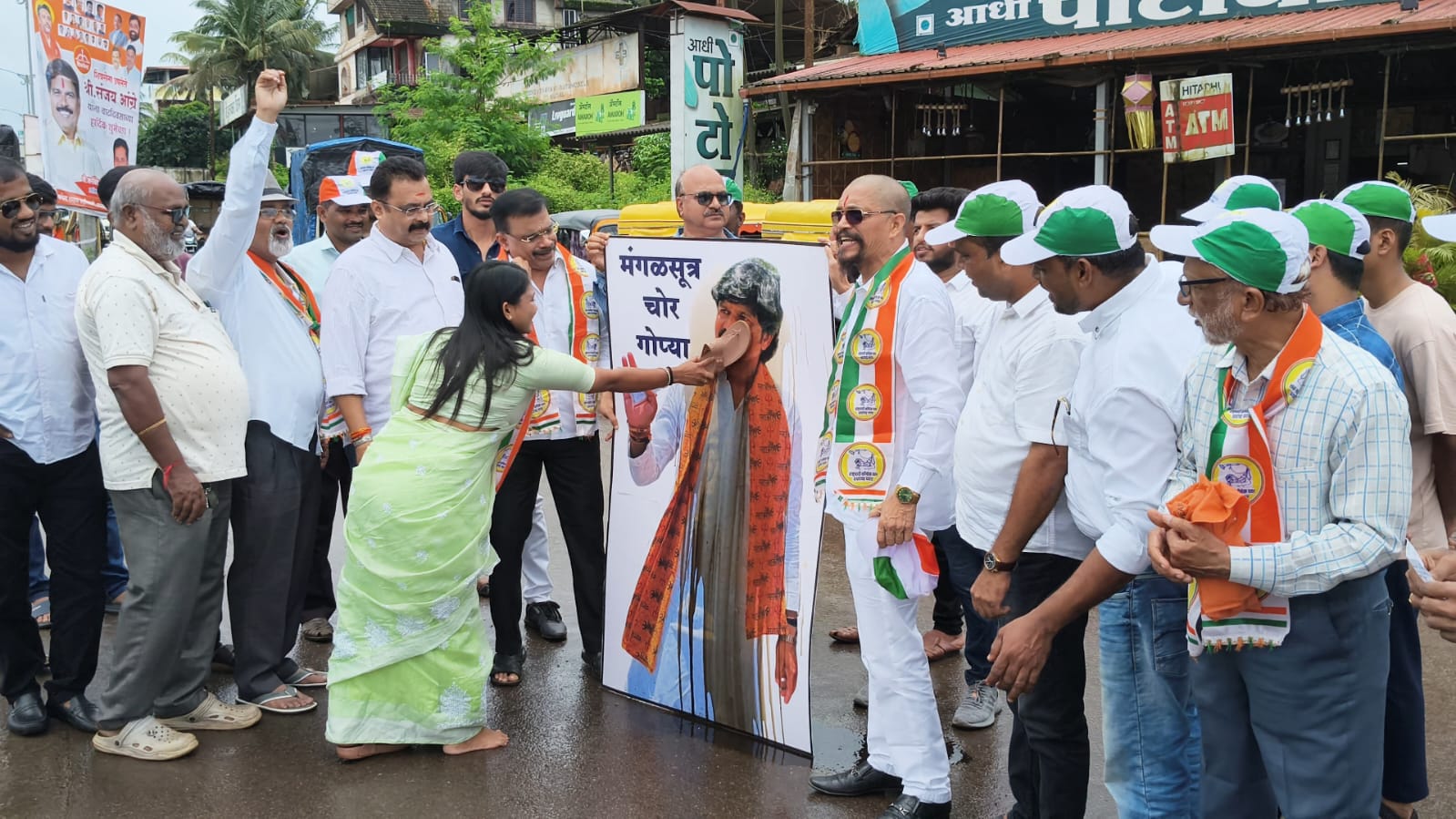 कुडाळमध्ये प्रतिकात्मक पुतळ्याला जोडे मारो आंदोलन..