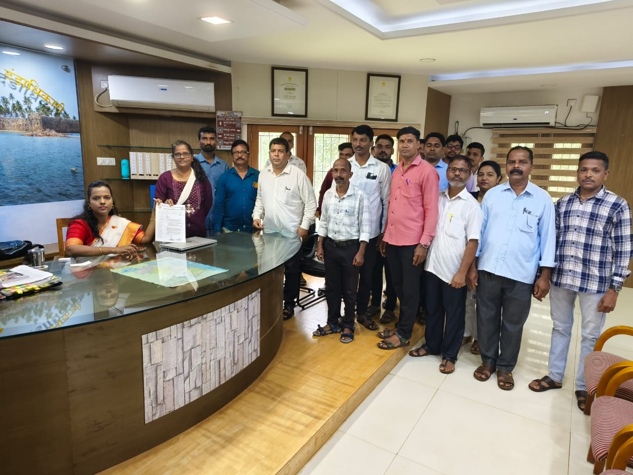 महाराष्ट्र राज्यातील महसूल सेवक कोतवाल यांना चतुर्थ श्रेणीचा दर्जा राज्य सरकारने द्यावा. या मागणीसाठी महसूल सेवक संघटना नागपूर यांनी १२ सप्टेंबर पासून राज्यव्यापी आंदोलन पुकारले आहे. राज्य शासनाकडे महसूल सेवक यांना चतुर्थ श्रेणीचा दर्जा मिळावा अशी मागणी गेली कित्येक वर्ष करण्यात येत आहे. मात्र याबाबत अद्याप कोणताही निर्णय घेतलेला नाही. यामुळे महसूल सेवक कर्मचाऱ्यांमध्ये तीव्र नाराजी पसरली आहे. प्रलंबित असलेल्या मागणीकडे लक्ष वेधण्यासाठी नागपूर येथे राज्यव्यापी बेमुदत आंदोलन सुरू आहे. या आंदोलनाला सिंधुदुर्ग जिल्ह्यातील सर्व महसूल सेवक काम बंद आंदोलन करून नागपूर येथील आंदोलनात सहभागी होणार आहेत. तरी शासनाने याबाबत वेळीच निर्णय घ्यावा. अशी मागणी करणारे निवेदन आज सिंधुदुर्ग जिल्हा महसूल सेवक संघटनेच्या वतीने जिल्हाधिकारी यांना देण्यात आले. यावेळी संघटनेचे अध्यक्ष प्रशांत मिटवावकर, उपाध्यक्ष अर्चना दळवी, यांच्यासह संतोष नाईक, दीपक आरेकर, सुरेंद्र पेडणेकर, लिया लब्धे ,विश्वनाथ गुरव, योगेश वेंगुर्लेकर आदी पदाधिकारी व सदस्य उपस्थित होते.