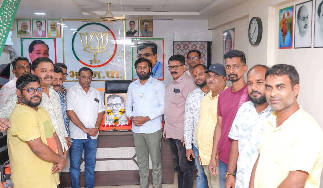 भाजपा युवा नेते श्री विशाल परब यांनी यावेळी पंडित दिनदयाळ उपाध्याय यांच्या प्रतिमेस पुष्पहार घालून विनम्र अभिवादन केले.