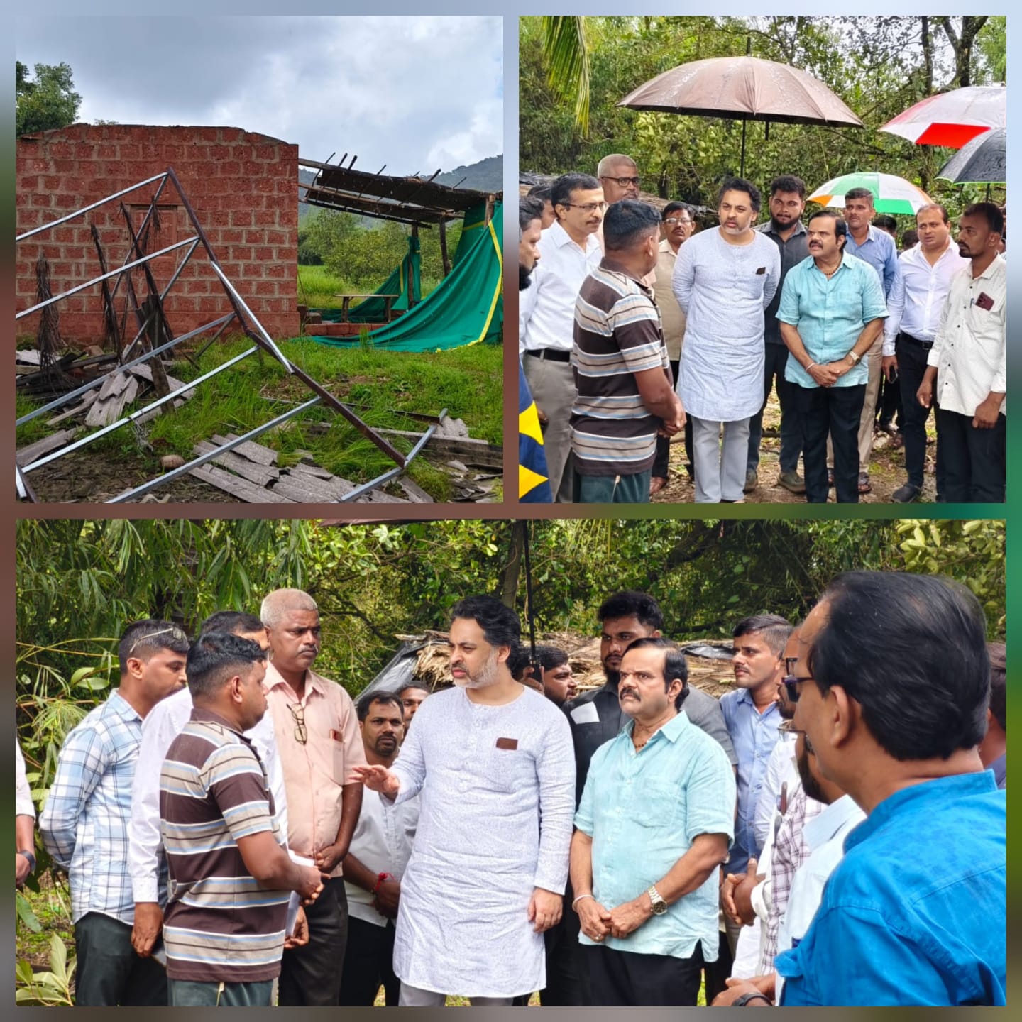दोन दिवसांपूर्वी माणगाव खोऱ्यातील निवजे गावात चक्रीवादळाने गावातील घरांचे मोठे नुकसान झाले. होते. या शक्तिशाली वादळाचा मोठा फटका बसला आहे. या नैसर्गिक आपत्तीत गावातील अनेक घरांचे मोठे नुकसान झाले असून, संसारोपयोगी साहित्याचेही अपरिमित नुकसान झाले आहे. या वादळामुळे झालेल्या नुकसानीची पाहणी करण्यासाठी आणि पीडित कुटुंबांना आधार देण्यासाठी आमदार निलेश राणे यांनी निवजे गावाला भेट दिली. या भेटीदरम्यान, नुकसानग्रस्त कुटुंबांना वैयक्तिक स्तरावर तातडीची मदत देण्यात आली.