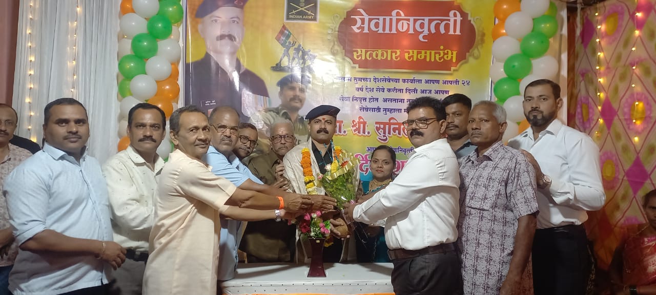 ⚡कुडाळ ता.०५-: भारतीय सैन्य दलात २४ वर्ष देश सेवेसाठी अर्पण करून सुखरूप गावी परतलेल्या निवृत्त नायब सुभेदार सुनिल सुर्वे यांचा सुर्वेवाडी ग्रामस्थांनी शनिवारी सायंकाळी मोठ्या जल्लोषात सत्कार केला. यावेळी विविध क्षेत्रातील मान्यवरांनीही उपस्थित राहून सुर्वे यांच्या देशसेवेच्या कार्याबद्दल सन्मान केला.