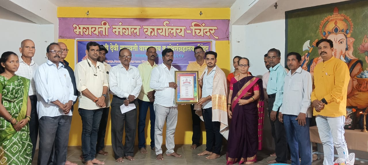 चिंदर येथील श्री देवी सरस्वती वाचनालय व ग्रंथसंग्रहालयाची वार्षिक सर्वसाधारण सभा आज भगवती मंगल कार्यालय चिंदर भटवाडी येथे उत्साहात संपन्न झाली. यावेळी संस्थेसाठी भरीव योगदान देणारे, सामाजिक तसेच शैक्षणिक कार्यात नेहमी अग्रेसर असणारे कै. संदिपभाई पारकर यांना श्री देवी सरस्वती वाचनालय चिंदरच्यावतीने देण्यात येणारा ‘मरणोत्तर कार्यगौरव पुरस्कार’ त्यांचा सुपूत्र निशांत पारकर यांना वाचनालय अध्यक्ष प्रकाश मेस्त्री यांच्या हस्ते कार्यकारीणीच्या उपस्थितीत प्रदान करण्यात आला.