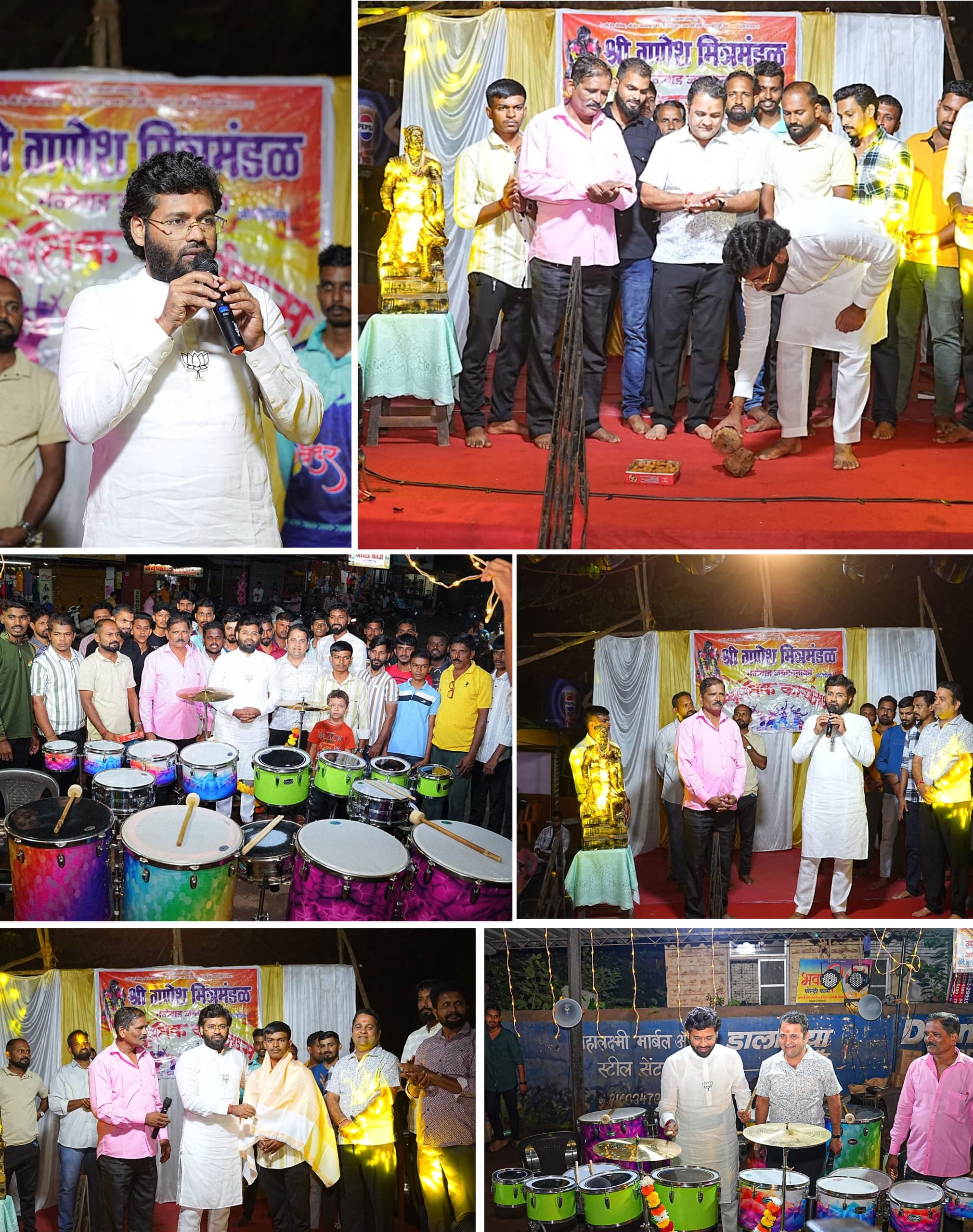 ⚡सावंतवाडी ता.०६-: जकात नाका येथे श्री गणेश मित्रमंडळातर्फे आज एका भव्य सांस्कृतिक कार्यक्रमाचे आयोजन करण्यात आले होते. भाजपा युवा नेते श्री विशाल परब यांच्या शुभहस्ते या कार्यक्रमाचे उद्घाटन करण्यात आले. या सांस्कृतिक कार्यक्रमाला विशाल परब यांनी आपली उपस्थिती दाखवली. परंतु याच कार्यक्रमादरम्यान त्यांनी या कार्यकर्त्यांनी कर्जउभारणीतून वाद्ये खरेदी करत सुरु केलेल्या श्री स्वामी समर्थ बिट्सचे देखील उद्घाटन त्यांनी याप्रसंगी केले. या त्यांच्या कृतीने युवक भारावून गेले. मेहनतीतून उभे राहणाऱ्या कार्यकर्त्यांना उभारी मिळावी हीच आपली इच्छा असल्याचे सांगत यावेळी श्री विशाल परब यांनी वाद्यवादनाचा आनंदही लुटला.