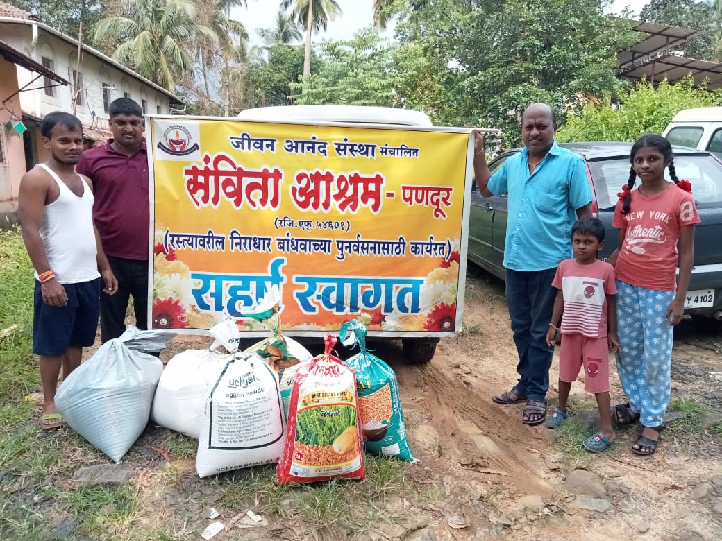 सावंतवाडी : रस्त्यावरील निराधार बांधवांच्या पुनर्वसनासाठी कार्यरत असलेल्या जीवन आनंद संस्था संचालित ‘संविता आश्रम’ (पणदूर) यांना बाजारपेठ नवरात्र उत्सव मित्रमंडळाने जीवनावश्यक वस्तू मदत स्वरुपात प्रदान करण्यात आल्या. मंडळाच्या सामाजिक बांधिलकीतून हा स्तुत्य उपक्रम राबविण्यात आला.