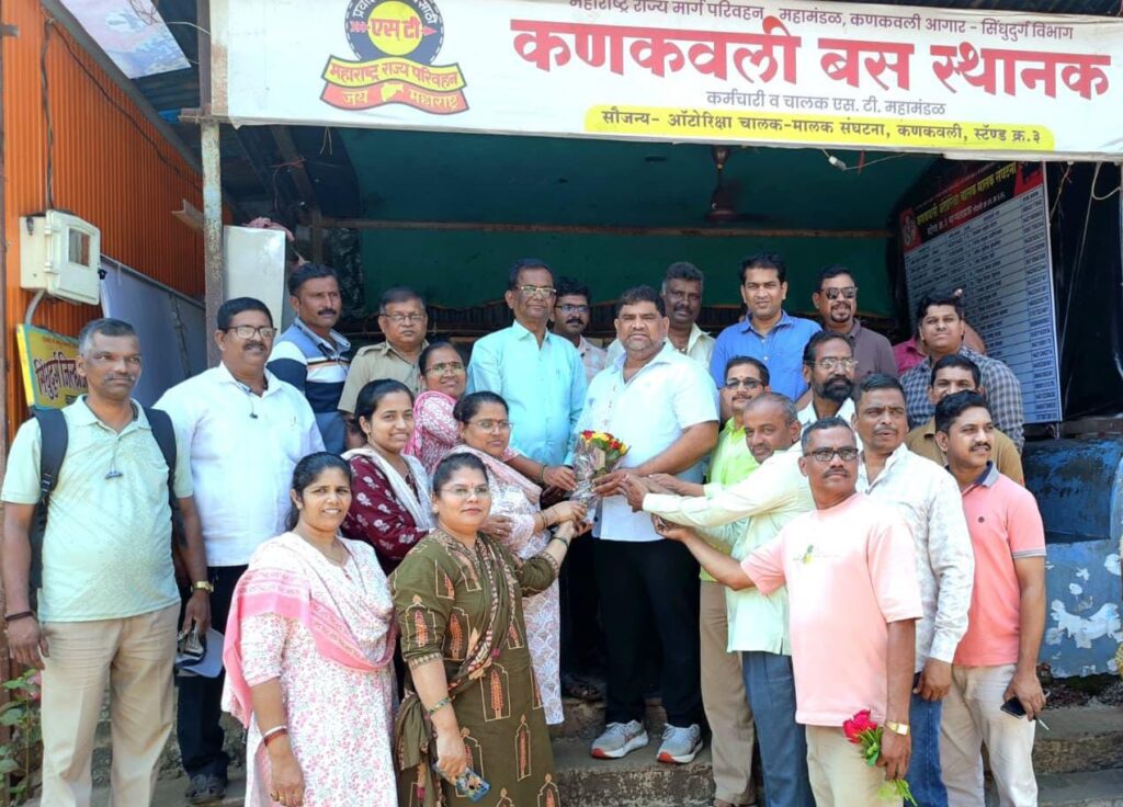 एसटी कामगारांच्या मागण्या मान्य झाल्याने कृती समितीकडून कणकवलीत आनंदोत्सव..