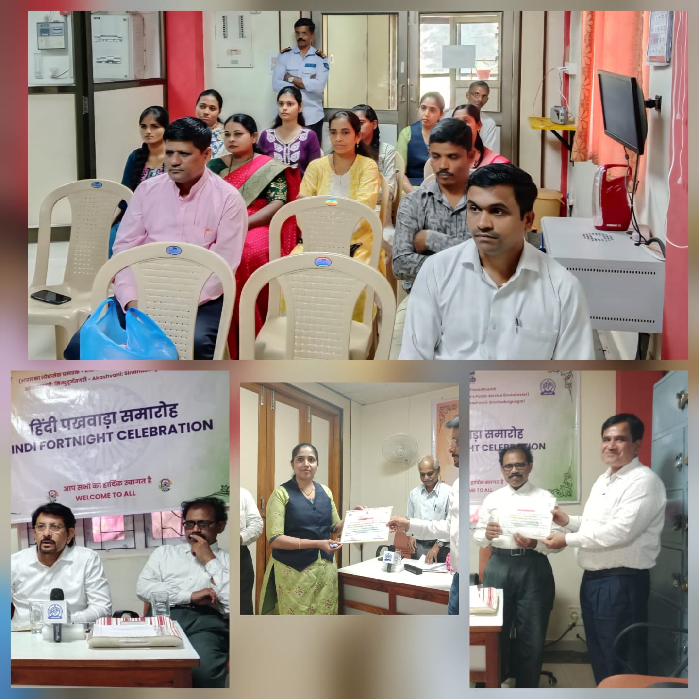 आकाशवाणीच्या वतीने दरवर्षी हिंदी भाषेला प्रोत्साहन देण्याच्या दृष्टीने हिंदी भाषा पंधरवडा साजरा करण्यात येतो. आकाशवाणी सिंधुदुर्गनगरी मध्ये सुद्धा हा पंधरवडा साजरा करण्यात आला. त्याची सांगता अलीकडेच झाली. या कार्यक्रमाला सहाय्यक संचालक (राजभाषा) पियुष गौतम, सहायक संचालक (कार्यक्रम) डॉ. सुनील गायकवाड, सहायक संचालक (अभियांत्रिकी) संजय खाडे, अभियांत्रिकी प्रमुख मोहन कावळे, प्रकाश वराडकर, उत्तम शिंदे उपस्थित होते.