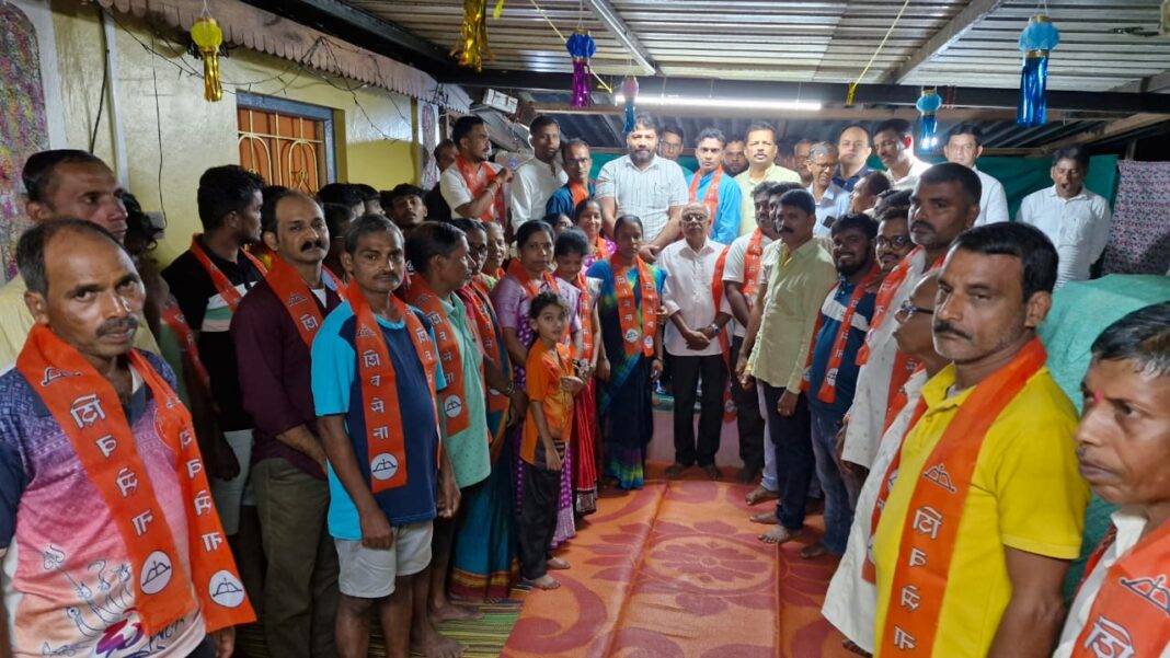 यावेळी वामन नार्वेकर, सचिन नार्वेकर किरण नार्वेकर शेखर नार्वेकर उषा नार्वेकर, सुनिता नार्वेकर, रेखा नार्वेकर, राजश्री नार्वेकर, सुप्रिया नार्वेकर राजेश्वरी नार्वेकर, भारती नार्वेकर, प्रज्ञेश गावडे, पार्वती गावडे, अमित गावडे, संदीप राऊळ, ज्योती सांगेलकर, सुशांत मठकर, सुचित मठकर, नामदेव राऊळ, आनंद परब, ऋषिकेश सावंत, सिद्धेश सावंत, कार्तिक रेडीज, ज्ञानेश्वर सावंत, सखाराम गावडे, संतोष सावंत, अमोल सांगेलकर, दशरथ सांगेलकर, आर्यन राऊळ, संतोष राऊळ, मनोहर सांगेलकर, उमेश राऊळ, नितीन राऊळ, महालक्ष्मी सांगेलकर, हितेश सांगेलकर, सावित्री सांगेलकर, विलास पारधी आदी शेकडो कार्यकर्त्यांनी शिव धनुष्य हाती घेतला.