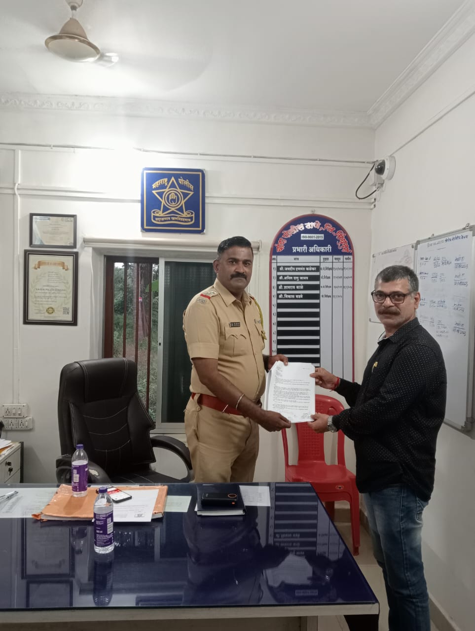 बांदा पोलीस निरीक्षक गजेंद्र पालवे यांना निवेदन देताना गुणेश गवस.