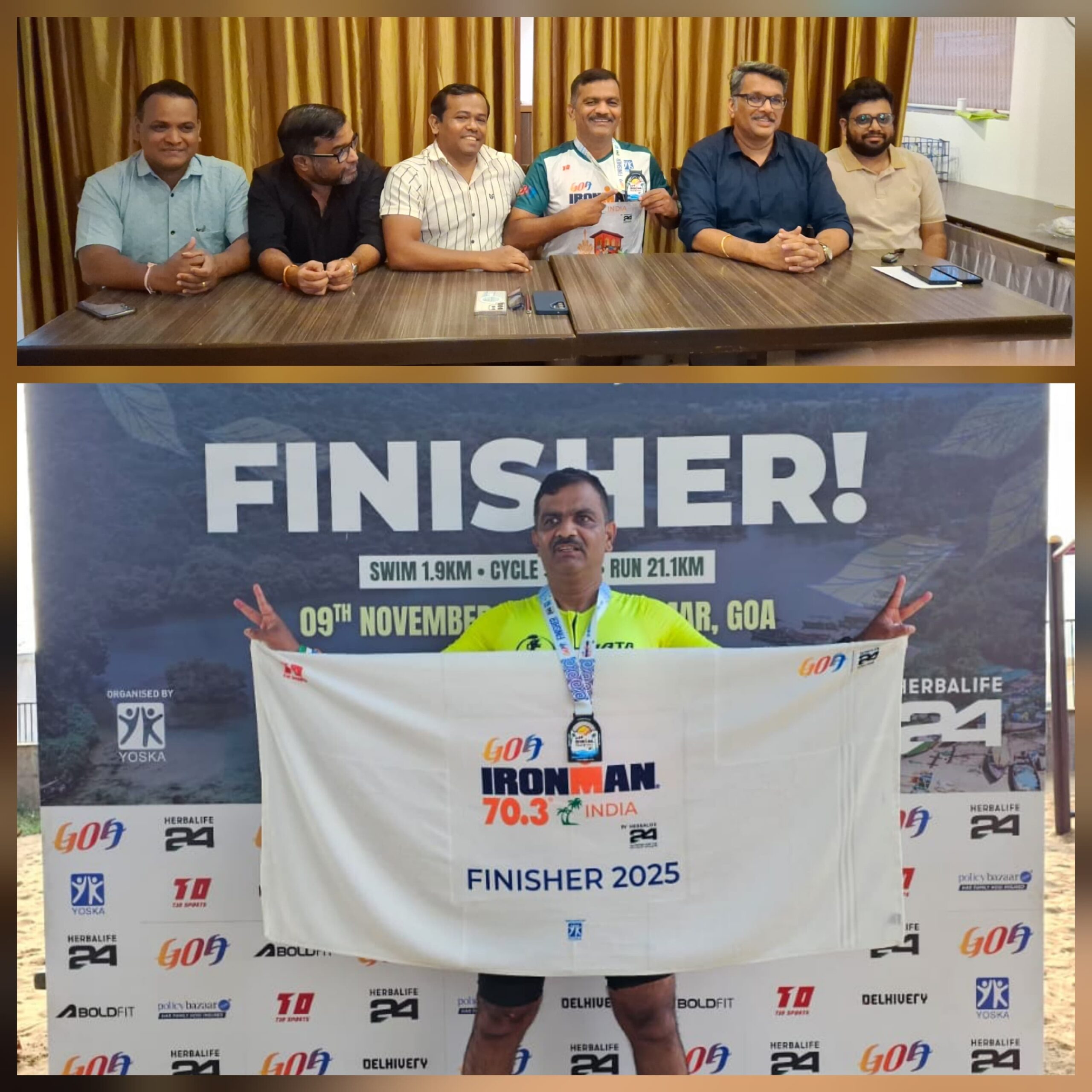 अतिशय मानाची समजल्या जाणारी गोवा आयर्नमॅन ७०.३ हि स्पर्धा रविवारी ९ नोव्हेंबर रोजी गोव्यात संपन्न झाली. या स्पर्धेत कुडाळ-पावशी येथील प्रमोद भोगटे यांनी ४५ ते ४९ या वयोगटातुन हि स्पर्धा पूर्ण करून इतिहास घडविला. याबद्दल माहिती देण्यासाठी कुडाळ येथे पत्रकार परिषदेचे आयोजन करण्यात आले होते. यावेळी गजानन कांदळगावकर, प्रमोद भोगटे, रुपेश तेली, शिवप्रसाद राणे, डॉ. बापू परब, प्रथमेश सावंत, रोहन कोरगावकर, केदार भाट, सचिन मदने उपस्थित होते.