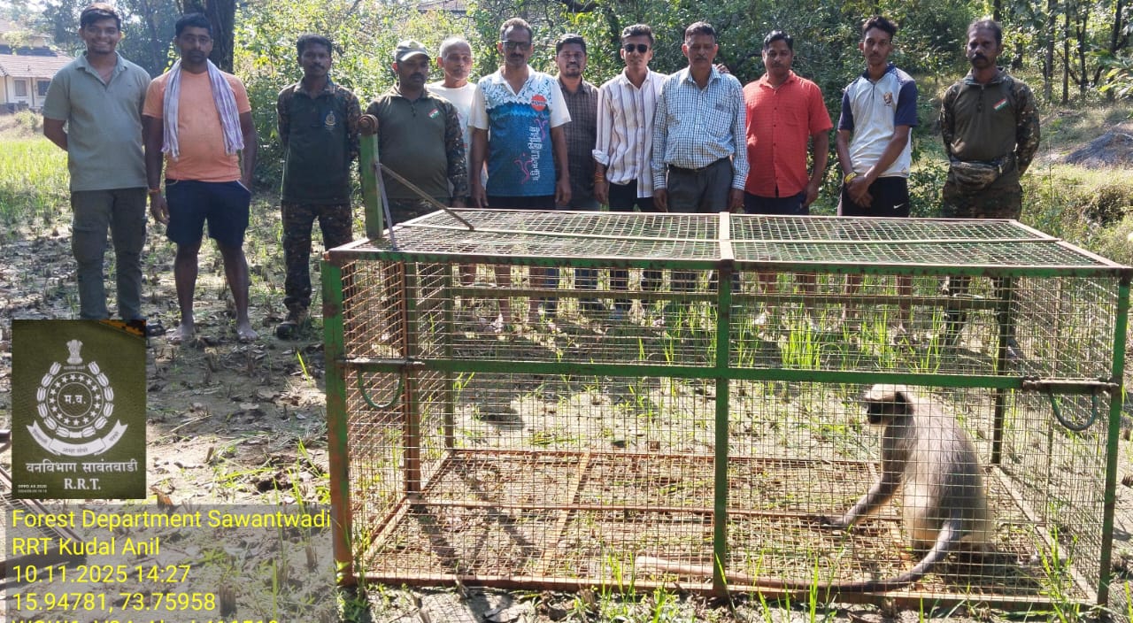 हुमरस वारंगवाडी येथे गेले १५ दिवस एक वानर दुकानात शिरत होता. गाड्यांचे आरसे तोडून काढत होता. वारंग वाडीतील ग्रामस्थ त्यामुळे त्रस्त आणि भयभीत झाले होते. सरपंच यांना जेव्हा ही बातमी समजली तेव्हा तात्काळ त्यांनी वनक्षेत्र कुडाळ, वनपाल श्री सावंत यांना फोन वरून घटनेची माहिती दिली. श्री सावंत यांनी घटनेच गांभीर्य लक्षात घेऊन जलद बचाव पथकाचे श्री. गावडे यांना या बाबत माहिती देऊन तात्काळ वानराला पकडण्यासाठी पिंजरे लावण्याचे आदेश दिले. दुसऱ्याच दिवशी बचाव पथक वनरक्षक प्रसाद पाटील यांच्या सोबत हुमरस गावात दाखल झाले. परिसराची पहाणी करून पिंजरे स्थानिकांच्या मदतीने एका जागेवर सेट करण्यात आले. पण त्या वानराने पिंजऱ्याच्या दिशेला जायचेच टाळले. दोन दिवस तो वानर बचाव पथकाला पण गुंगारा देऊन गाड्यांचे आरसे काढत होता. स्थानिकांनीही वानराला पकडायची आशा आता सोडून दिली होती,