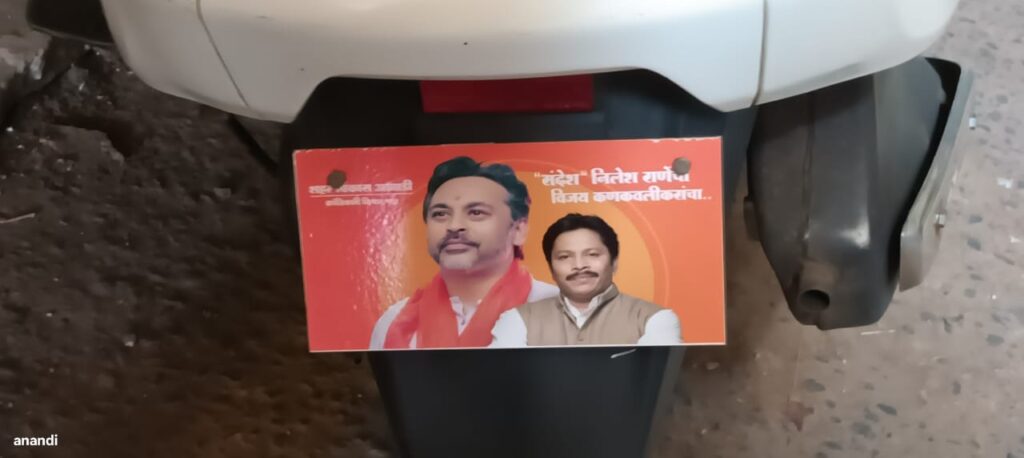यात सोशल मीडियावर तर वेगवेगळ्या पोस्ट, फोटो, प्रचाराचे प्रयोग सुरू आहेतच…पण सध्या शहरात सर्वाधिक चर्चा आहे ती एका समर्थकाच्या गाडीची ! होय, संदेश पारकर यांच्या एका चाहत्यानेच आपल्या स्वतःच्या गाडीवर, मागील नंबर प्लेटच्या जागी थेट संदेश पारकर व आमदार निलेश राणे यांचा मोठा पोस्टर फोटो लावला आहे.