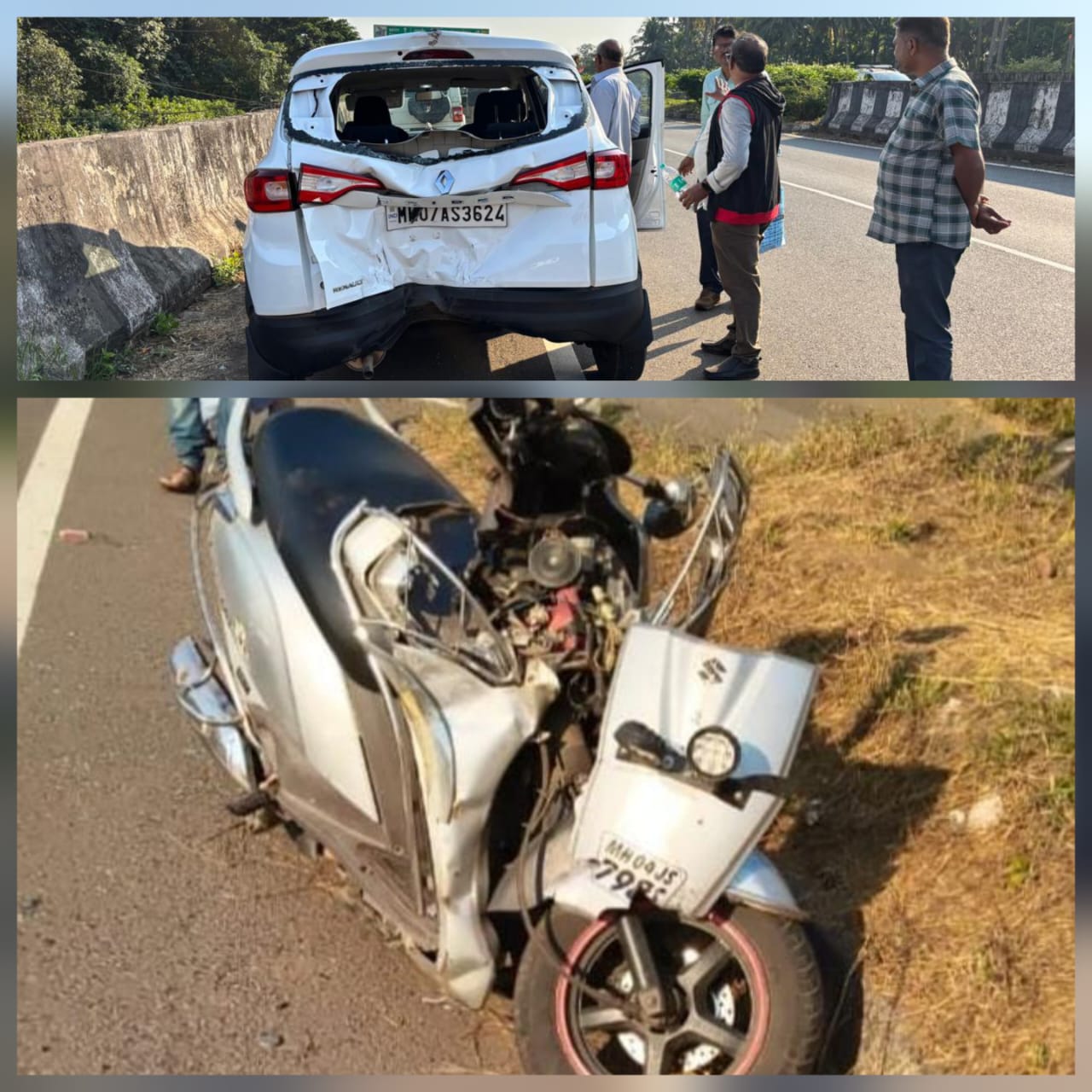 प्राप्त माहितीनुसार, मुंबईहून गोव्याकडे जाणाऱ्या भरधाव एक्टिवा दुचाकीची पुढे जाणाऱ्या रेनॉल्ड कारला मागून धडक बसली. या धडकेत दुचाकीस्वार गंभीर जखमी असून त्याला उपचारासाठी कुडाळ रुग्णालयात दाखल केले आहे. या अपघातात दुचाकीचे मोठे नुकसान झाले असून कुडाळ पोलिसांनी घटनास्थळी येऊन पंचनामा केला.